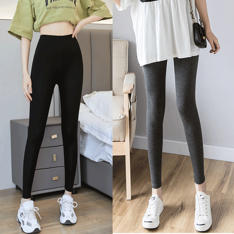 新款女士莫代尔保暖秋裤高腰棉质秋冬加绒大码灰色打底裤修身轻薄