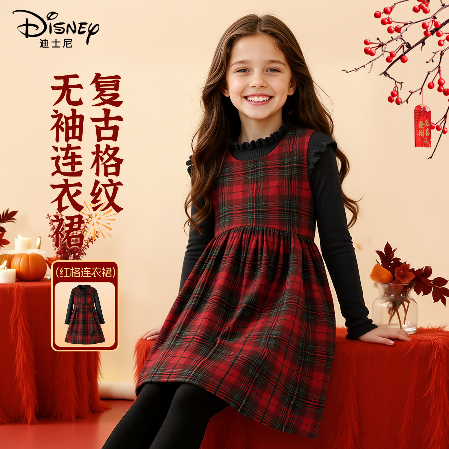 迪士尼拜年服女童连衣裙2026新款童装女孩加厚保暖年衣儿童冬装女