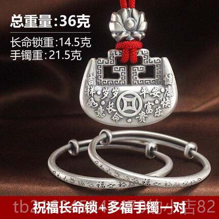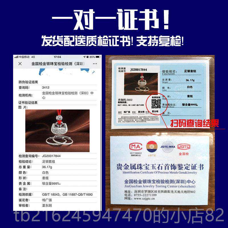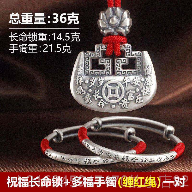 高档宝宝纯手镯9盒99银长命锁银婴儿银锁满月童镯子新生儿银饰礼