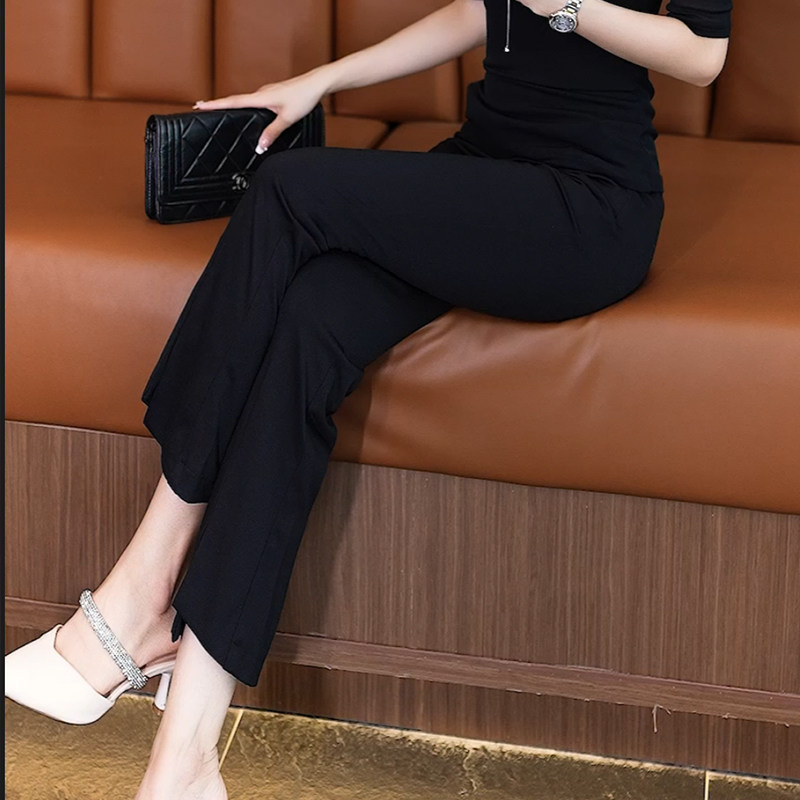 白色休闲裤女微喇九分裤女装修身