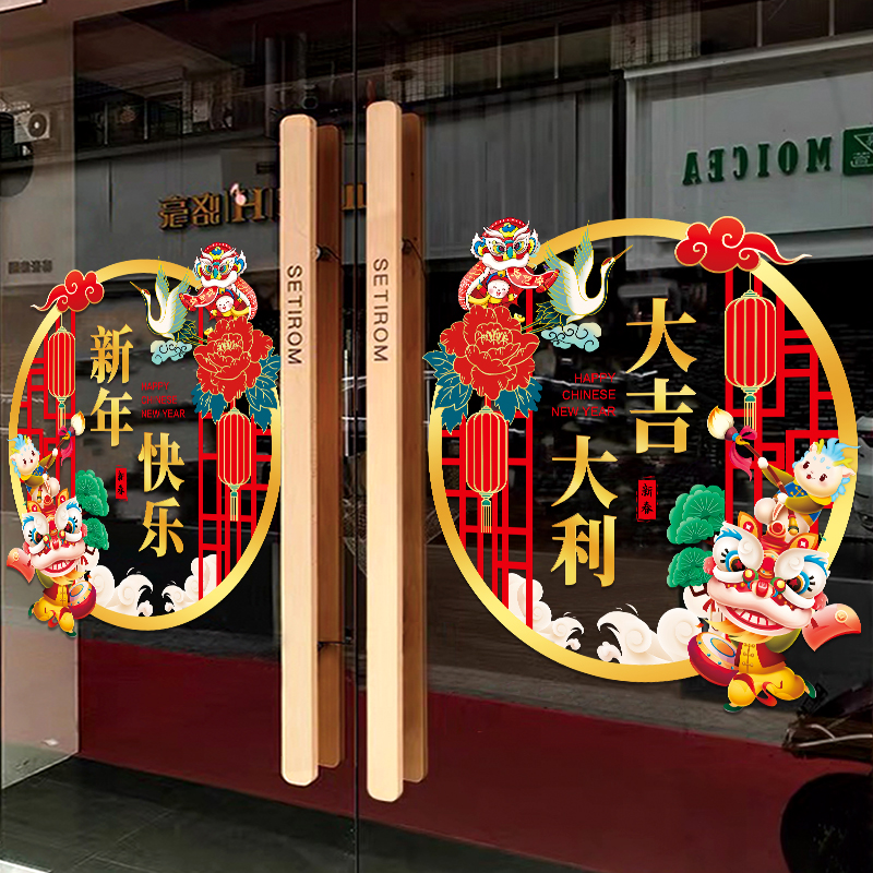 2024龙年新年玻璃贴纸春节过年橱窗店铺商场装饰布置门贴窗花贴画