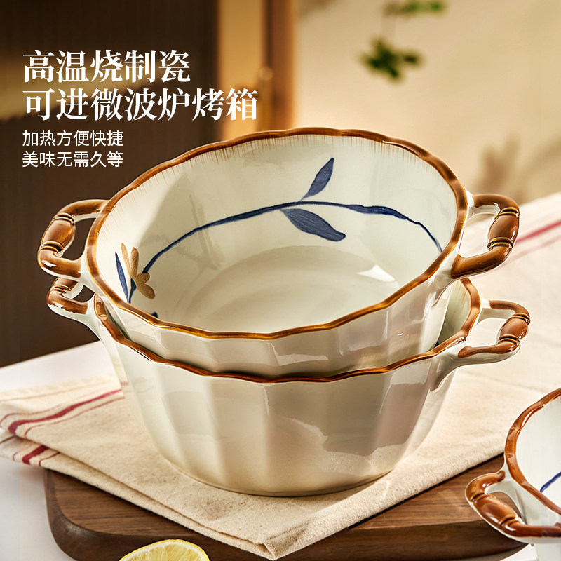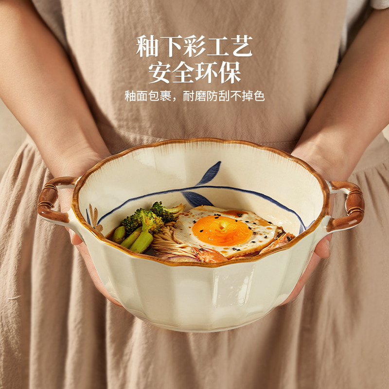 日式双耳汤碗家用2026新款釉下彩陶瓷大碗汤面碗汤盆大号吃泡面碗