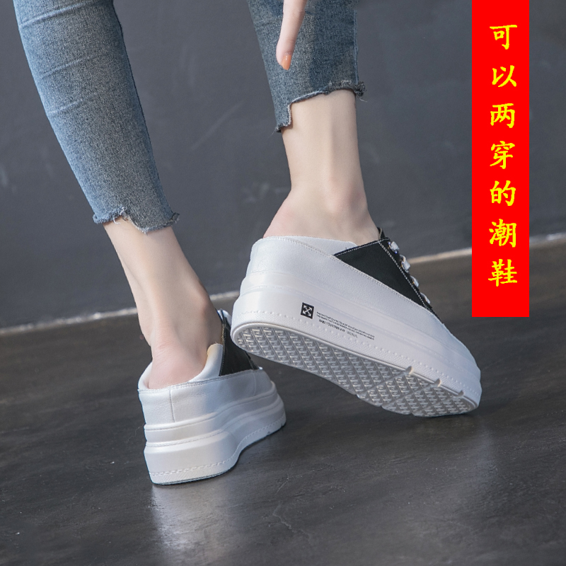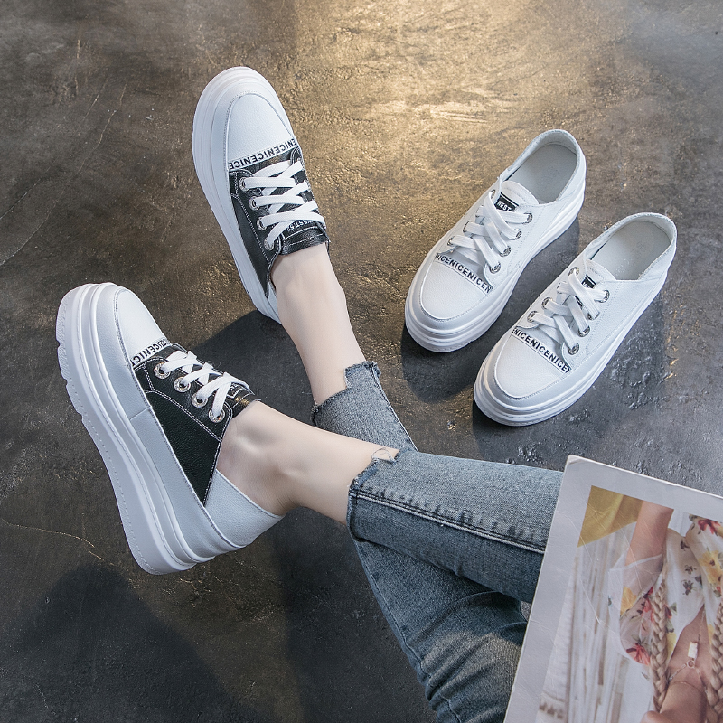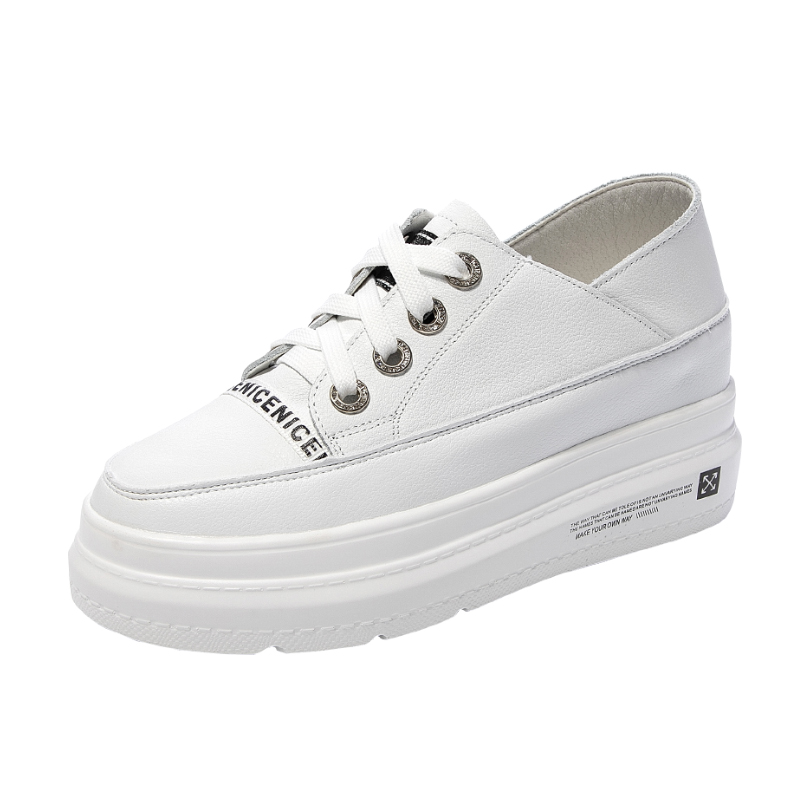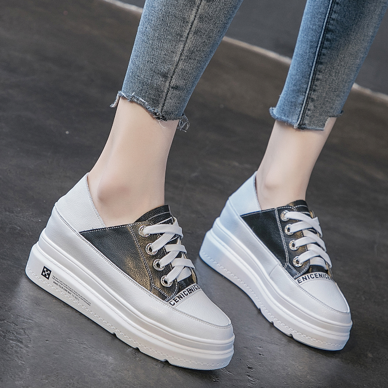 秋厚底内增高女鞋百搭旅游休闲运动鞋白色新款网红小码真皮松糕鞋
