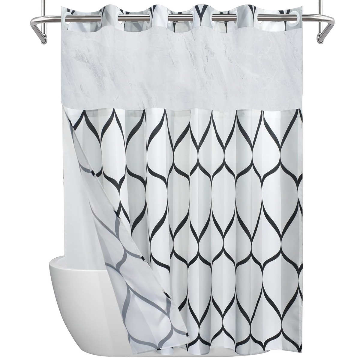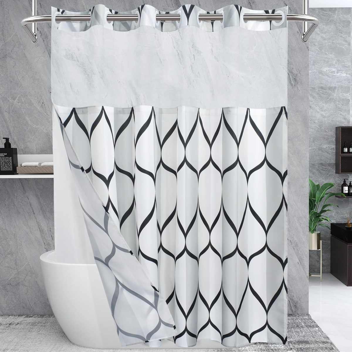 数码印花双层大环涤纶浴帘大理石花纹浴室帘防霉防水布加厚帘