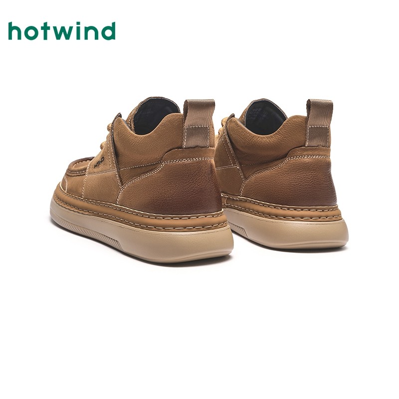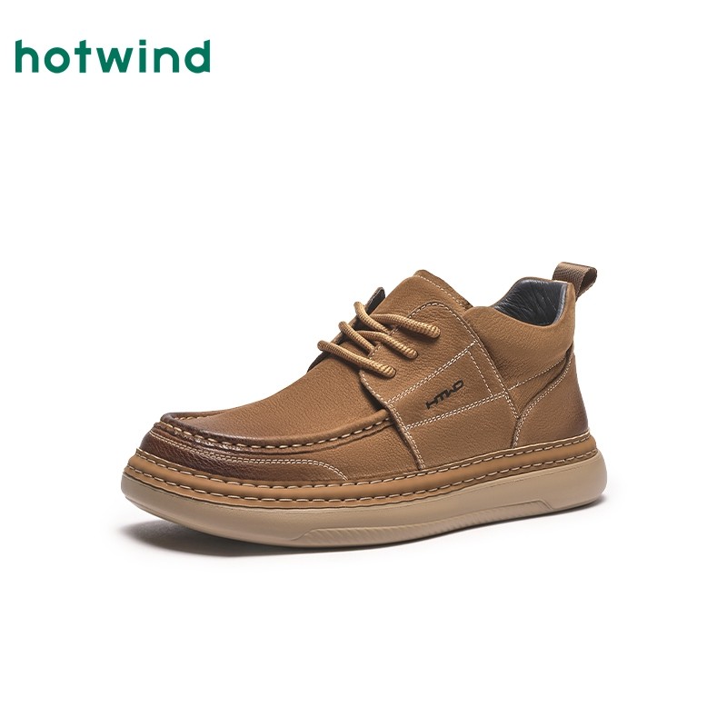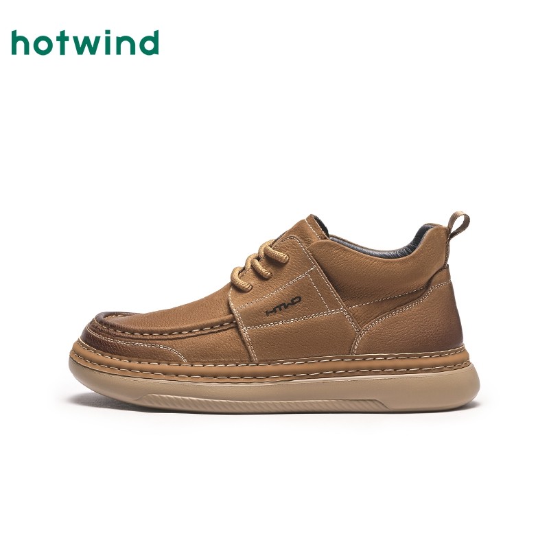 热风男鞋2025年秋季新款休闲皮鞋男士高帮厚底通勤鞋子H36M25102