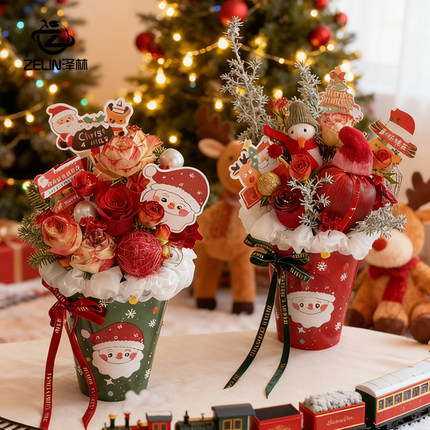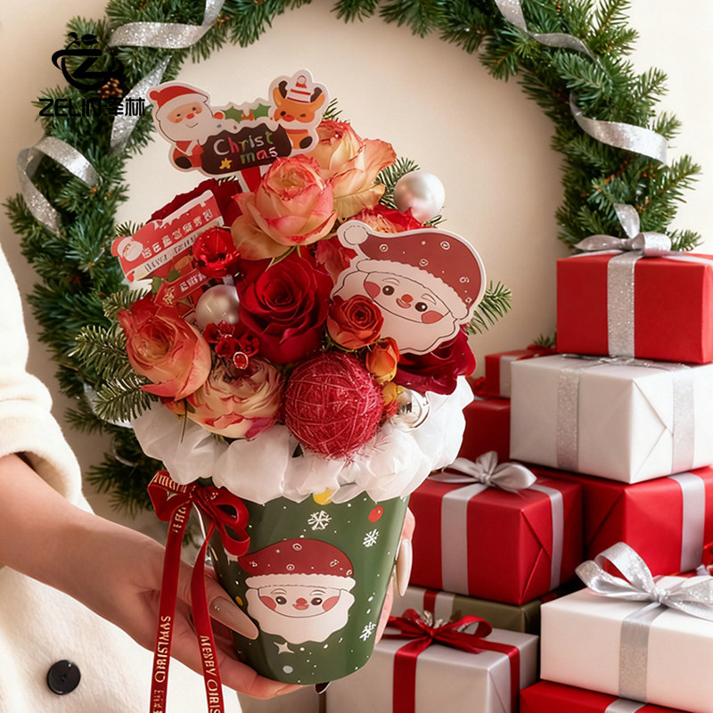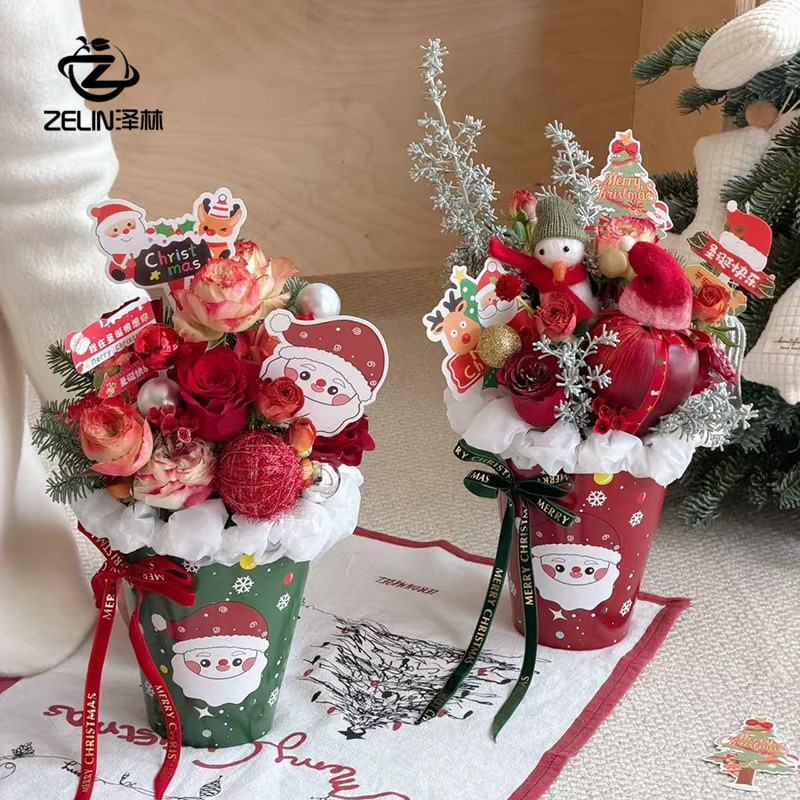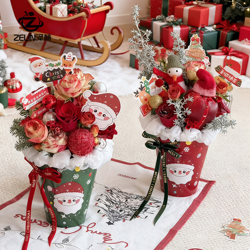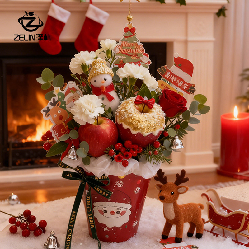 泽林新款圣诞节苹果包装抱抱桶冰淇淋插花桶平安夜礼物平安果礼盒