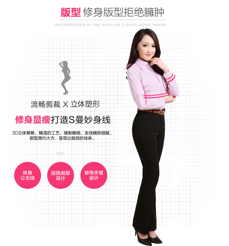 纯白衬衫女短袖修身隐条纹粉色蓝色纯棉衬衣职业正装OL长袖工作服