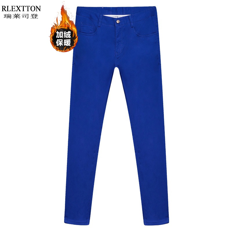 秋冬男裤加绒加厚保暖中腰直筒长裤子男装裤蓝色高尔夫休闲裤纯棉