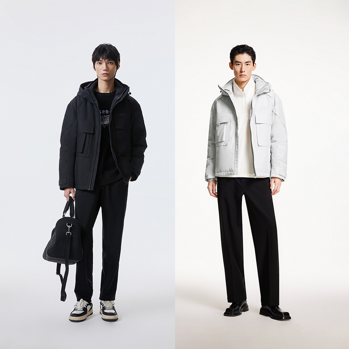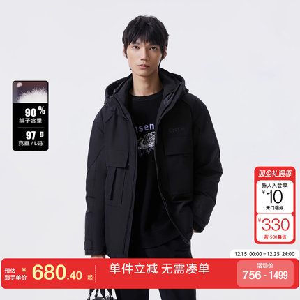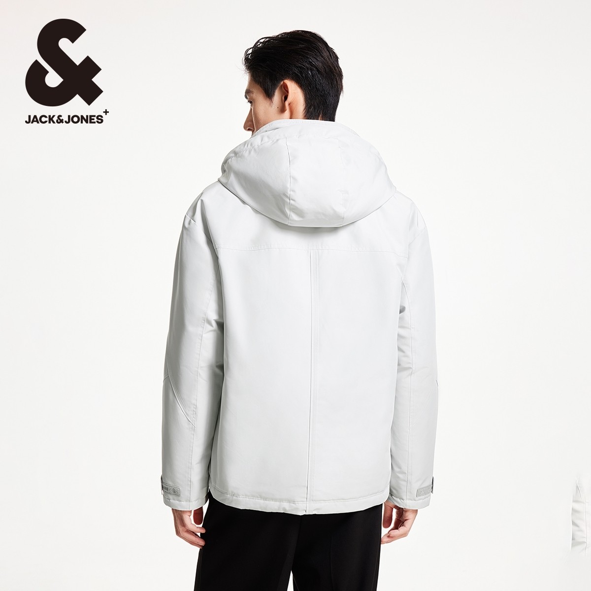绫致杰克琼斯2024秋冬工装风外套纯色宽松连帽羽绒服男百搭