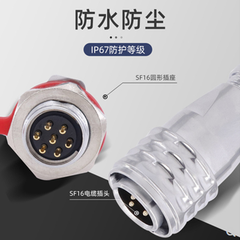 焊接SF16防水航空插头方形插座2/3/4/5/7/9芯推拉自锁圆形连接器