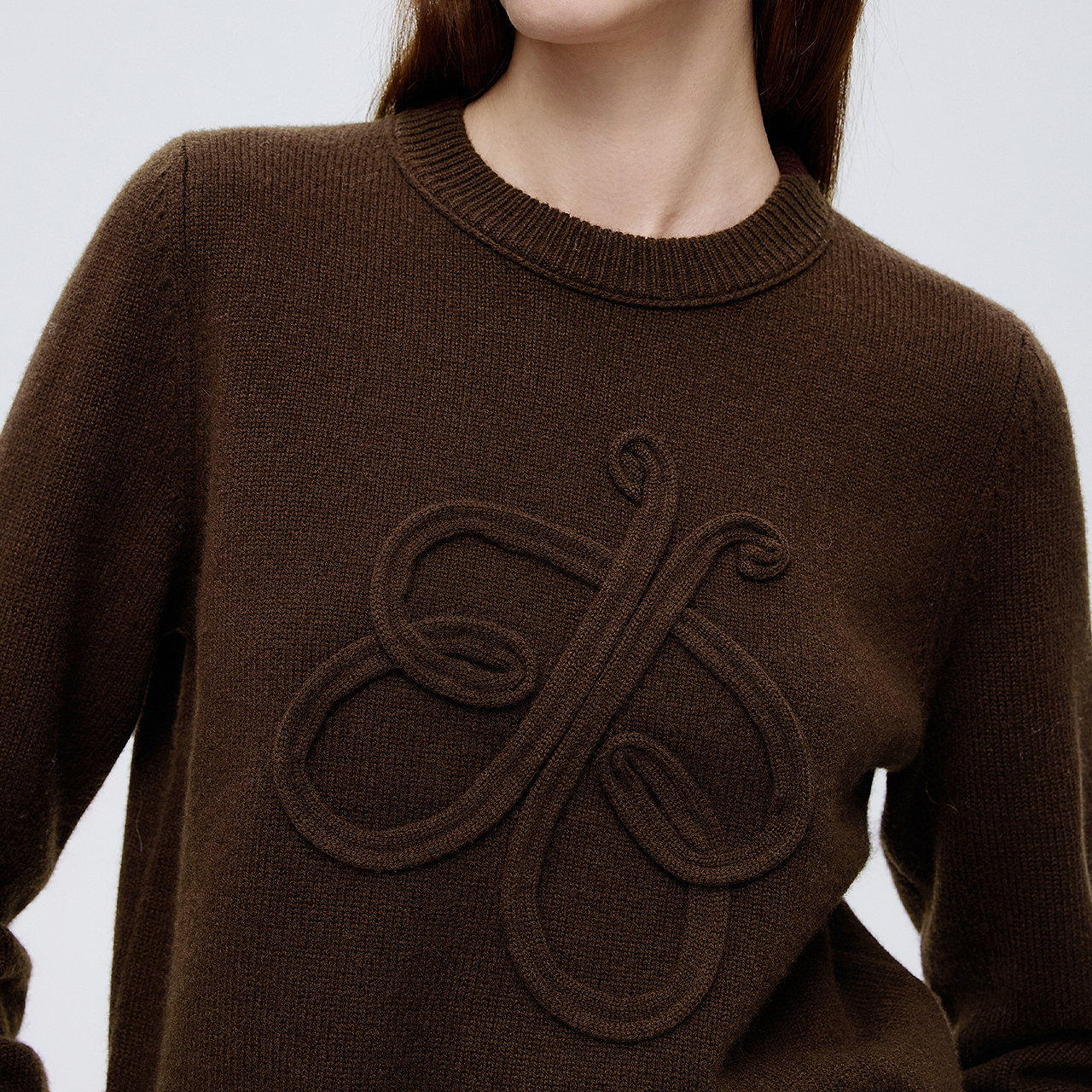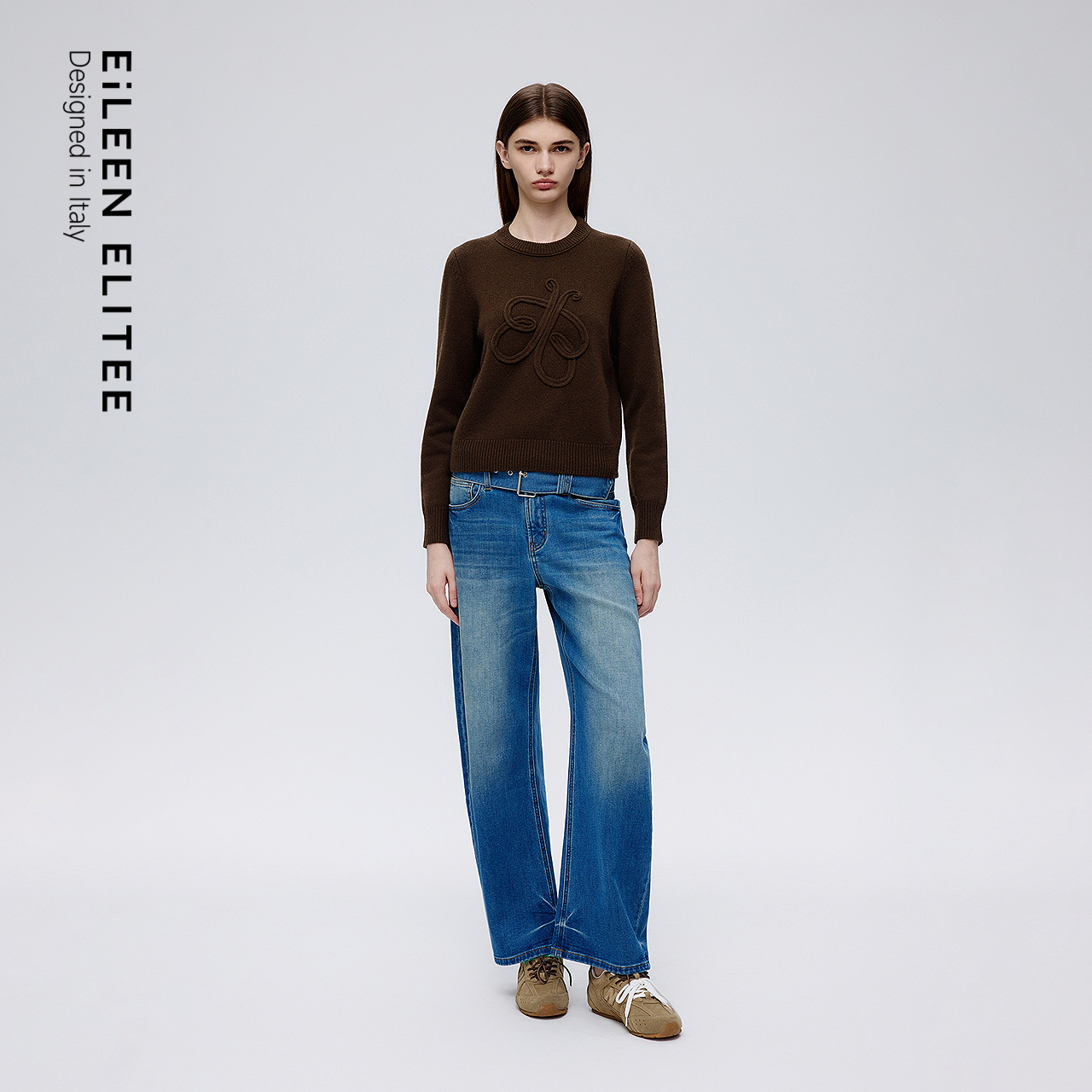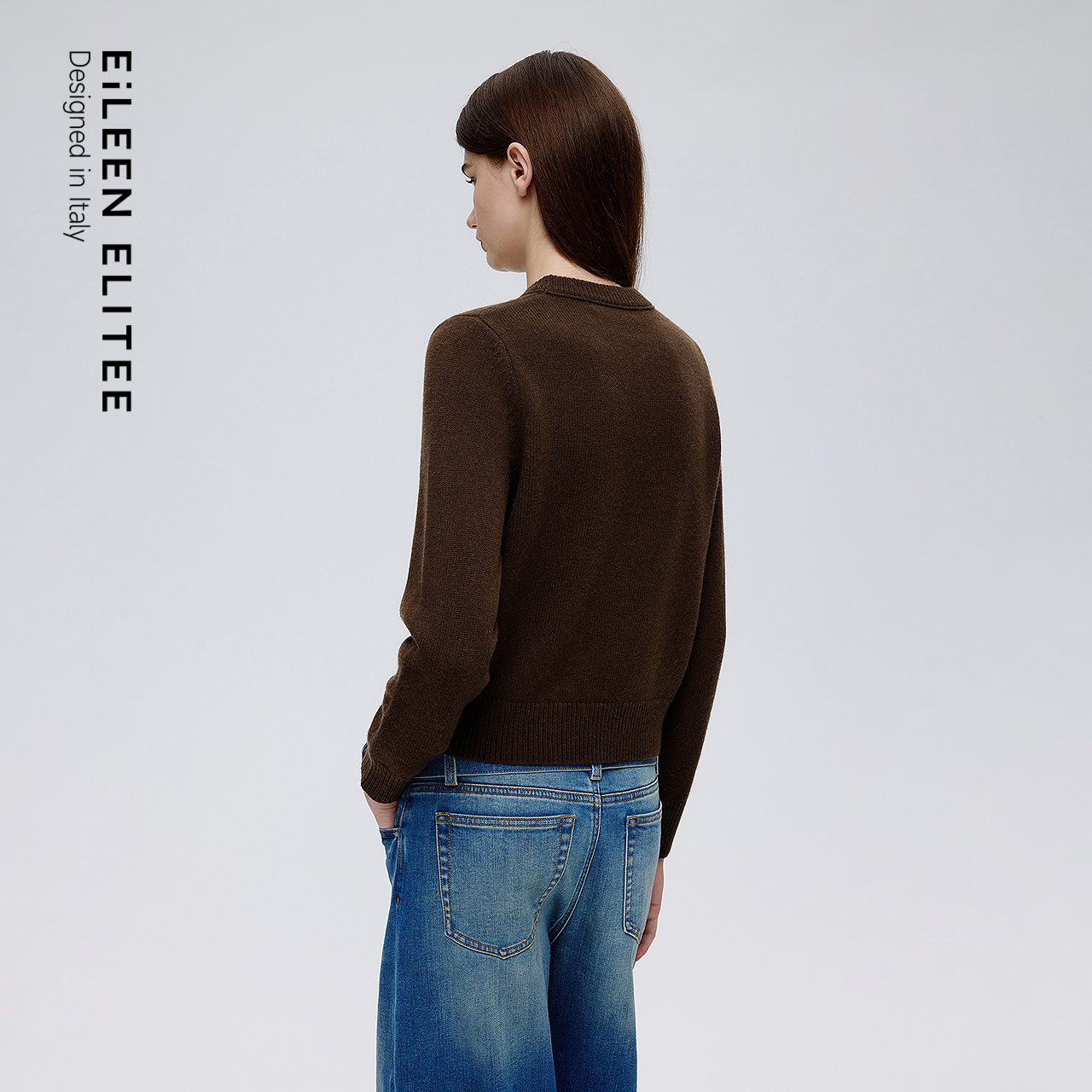 朗姿欧洲EiLEEN ELITEE纯羊毛棕色长袖针织衫女2025年冬季新款