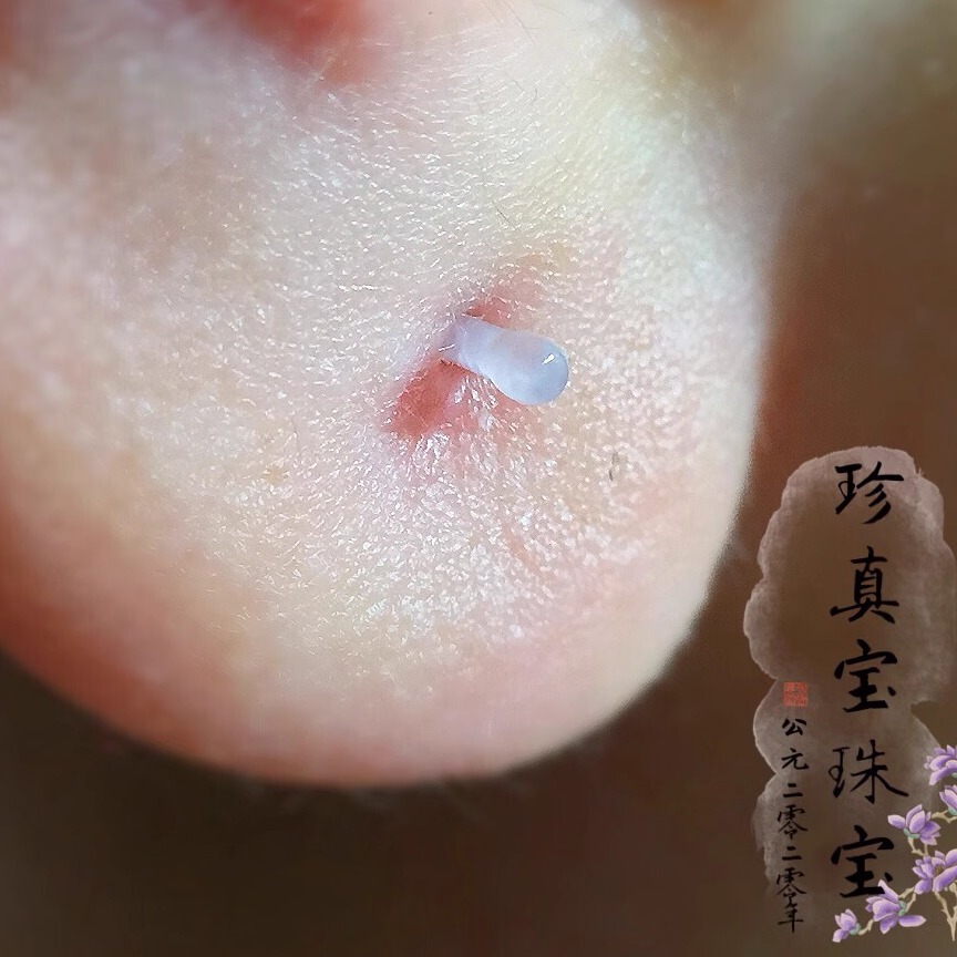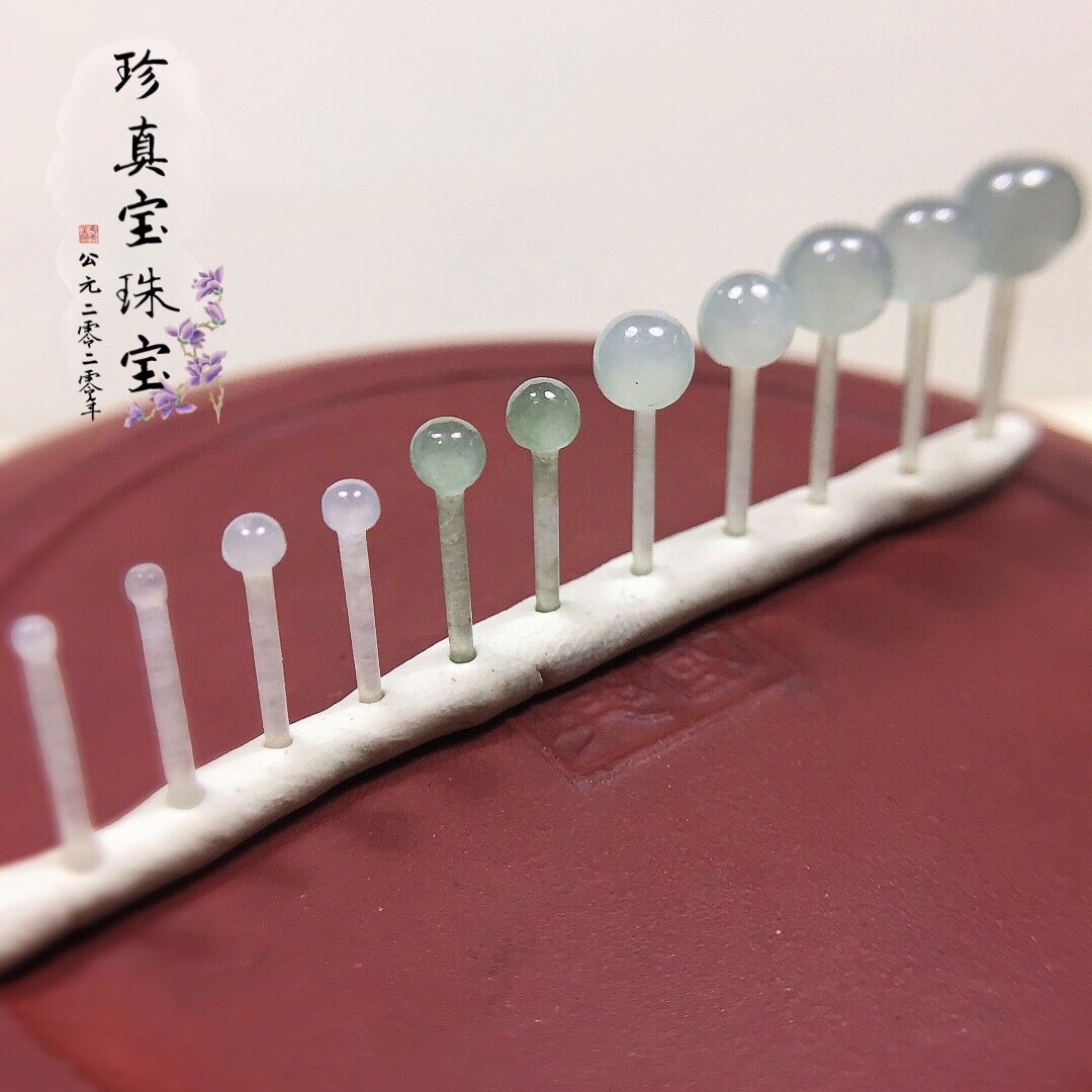 防过敏冰种翡翠玉石一体耳钉养耳棒耳棍耳饰珠子豆豆耳钉冰种耳坠