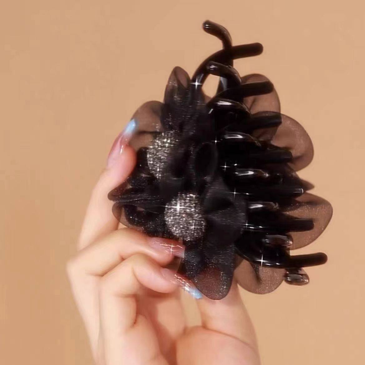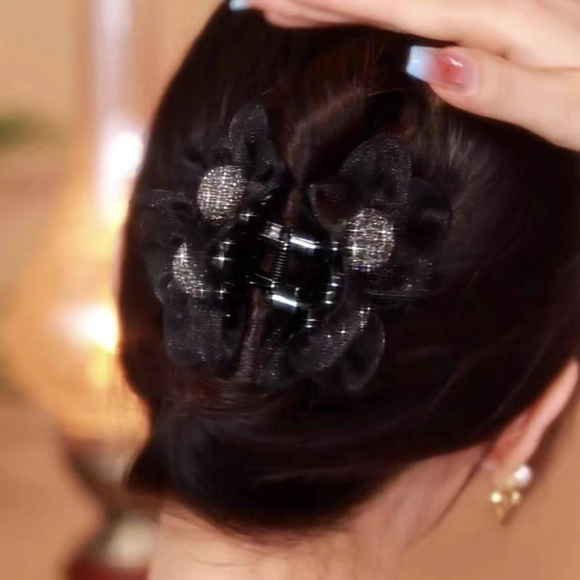 韩国爆款花朵丸子后脑勺专用气质发夹百搭盘发神器夹子头饰发饰