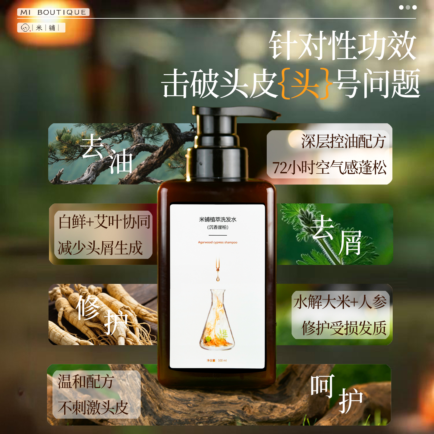 米铺植萃沉香崖柏洗发水控油蓬松去屑止痒改善毛糙植物洗发膏官方