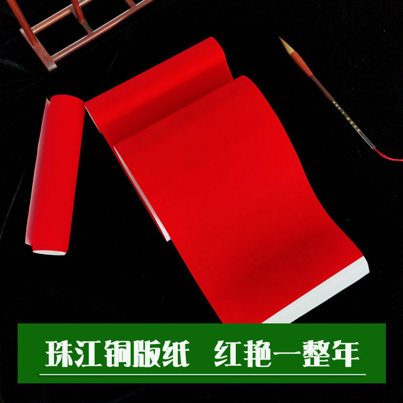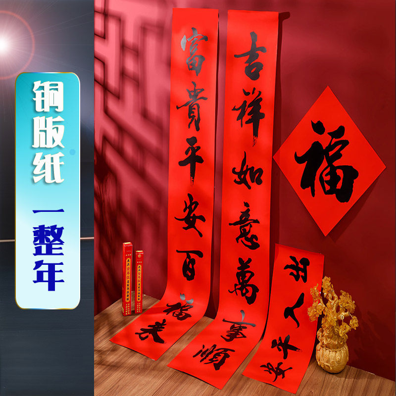 珠江春联万年红铜版纸纯红防水抗晒全年不褪色空白手写对联纸七九言金色字对联纸