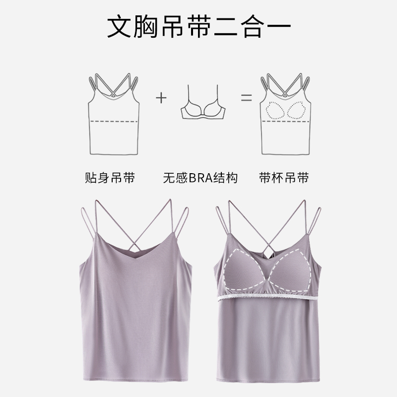 猫人吊带背心白色女士夏内搭打底外穿冰丝美背文胸带胸垫一体上衣