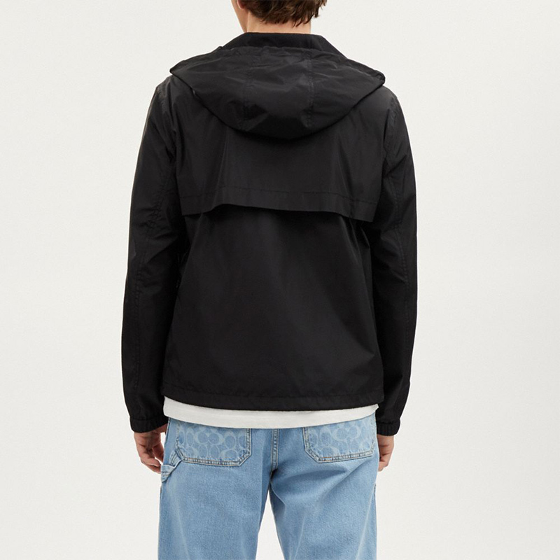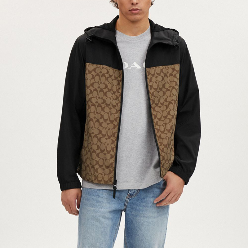 COACH/蔻驰奥莱男士经典标志老花全拉链户外夹克外套帽衫黑色百搭