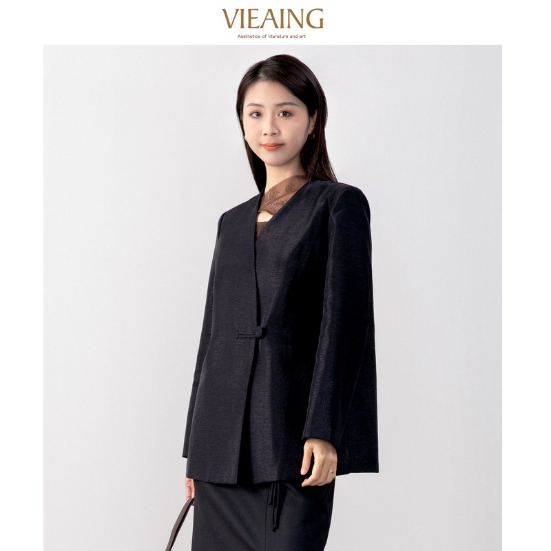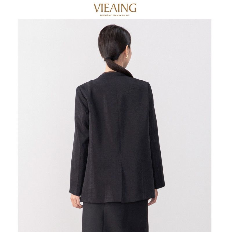 VIEA.ING薇迎春轻职V领单排扣长袖西装黑色高级感外套女