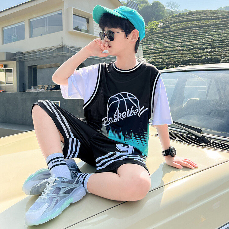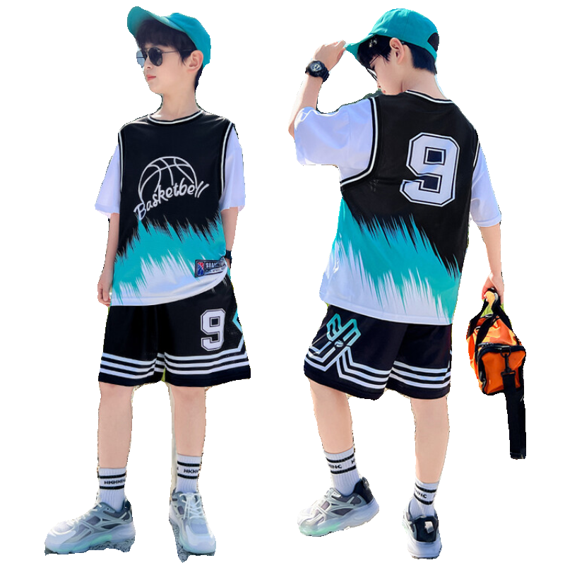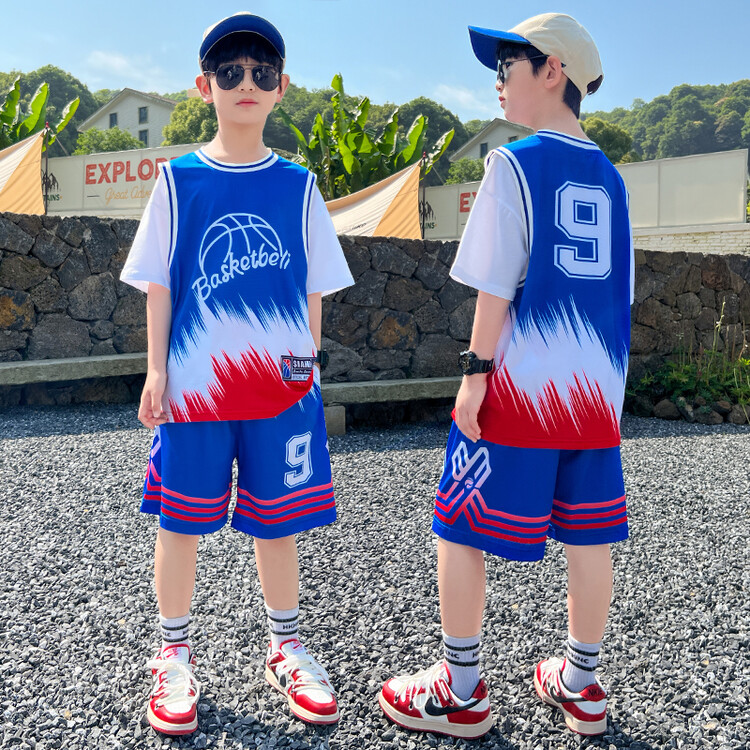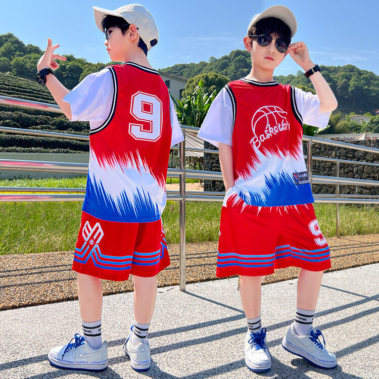男童篮球服速干运动套装儿童假两件短袖球服9号球衣大童训练服夏