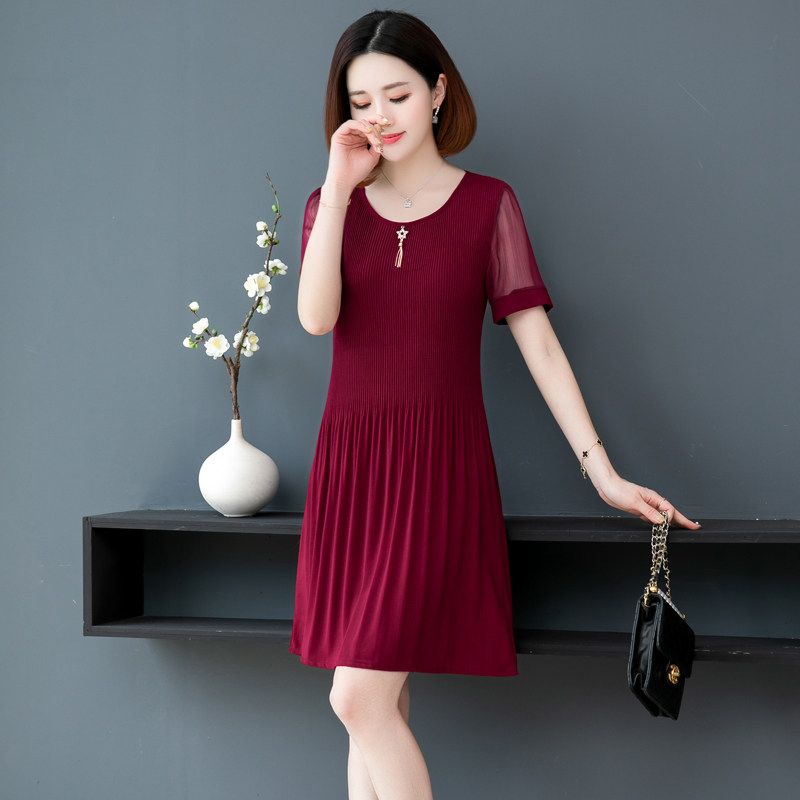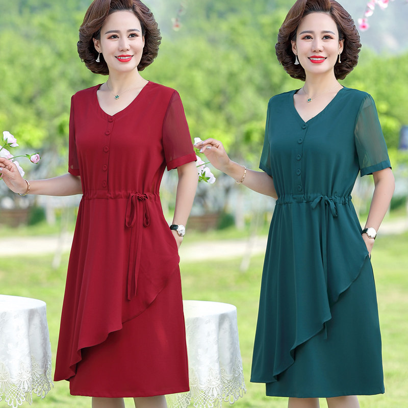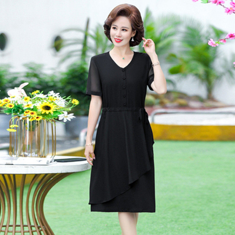 连衣裙女夏2021新款夏季气质胖mm显瘦中老年妈妈遮肚子百褶雪纺裙