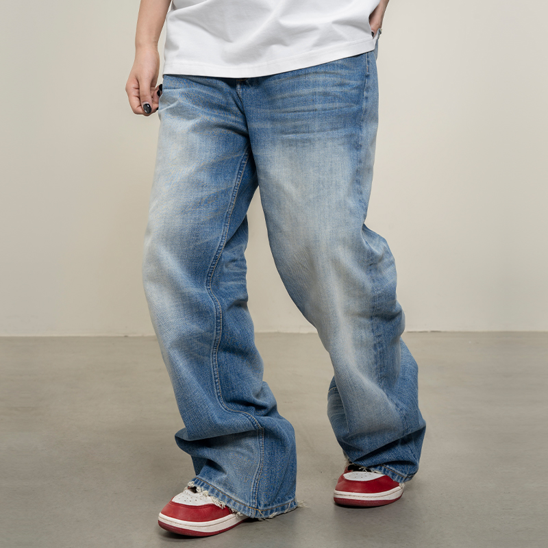 Makemore猫须牛仔裤男'这才是牛王'新款13.8oz水洗冰蓝B01直筒裤