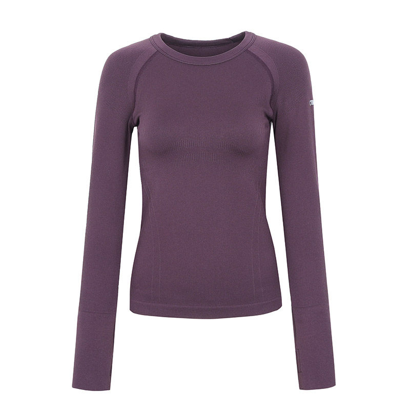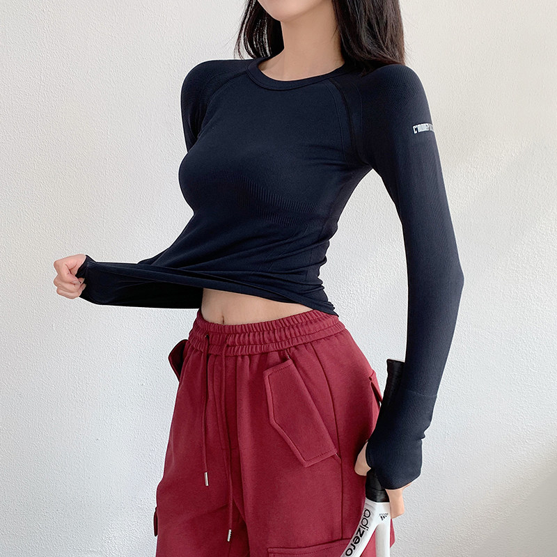 annerun圆领运动T恤女透气跑步速干显瘦上衣户外普拉提瑜伽服长袖
