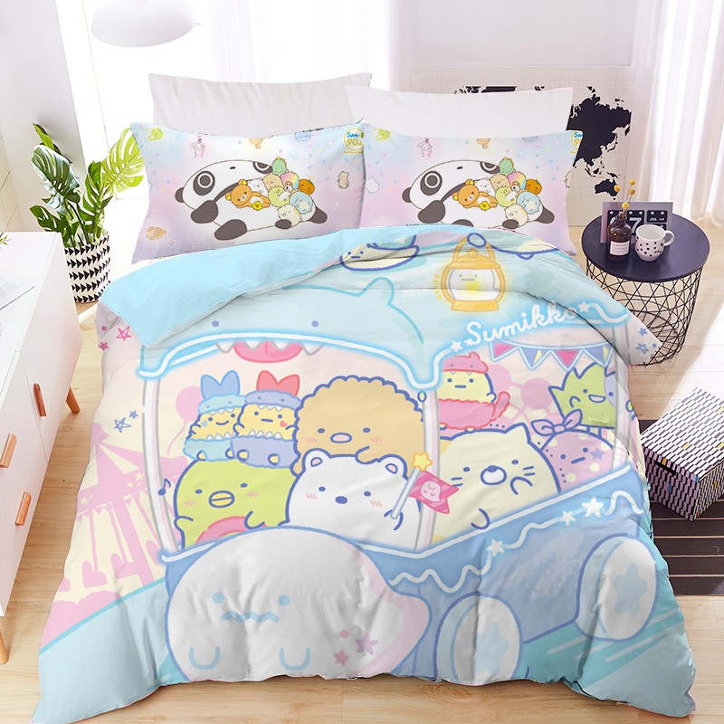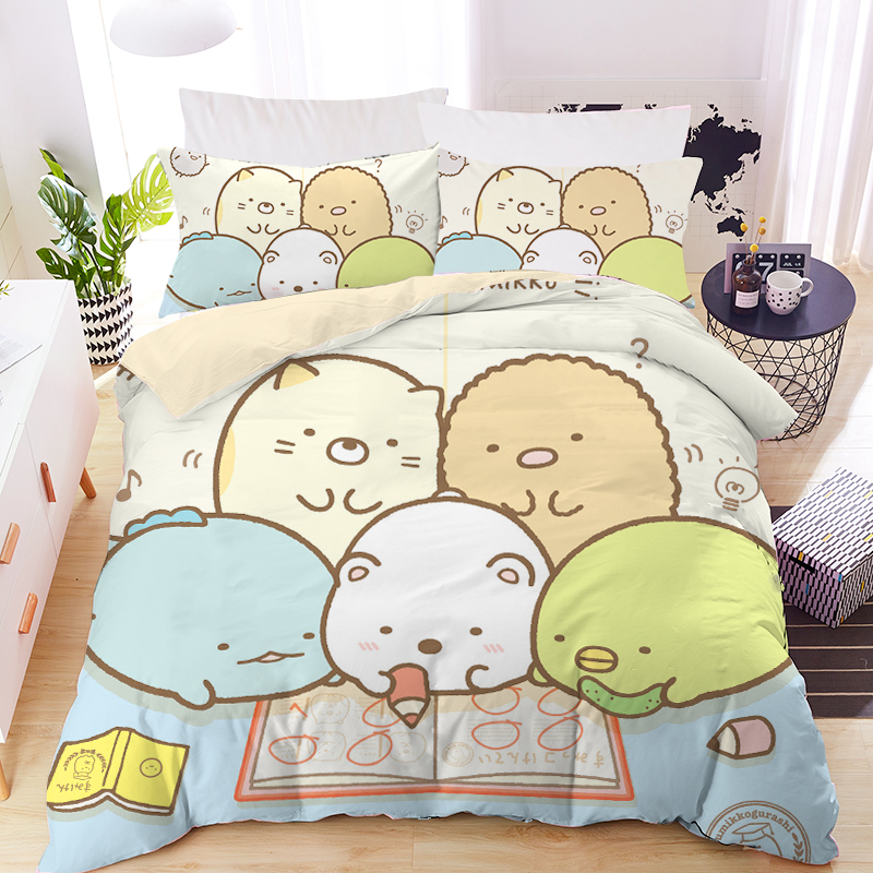 卡通儿童房角落生物全棉牀品3四件套女生纯棉牀单学生宿舍被套1.5