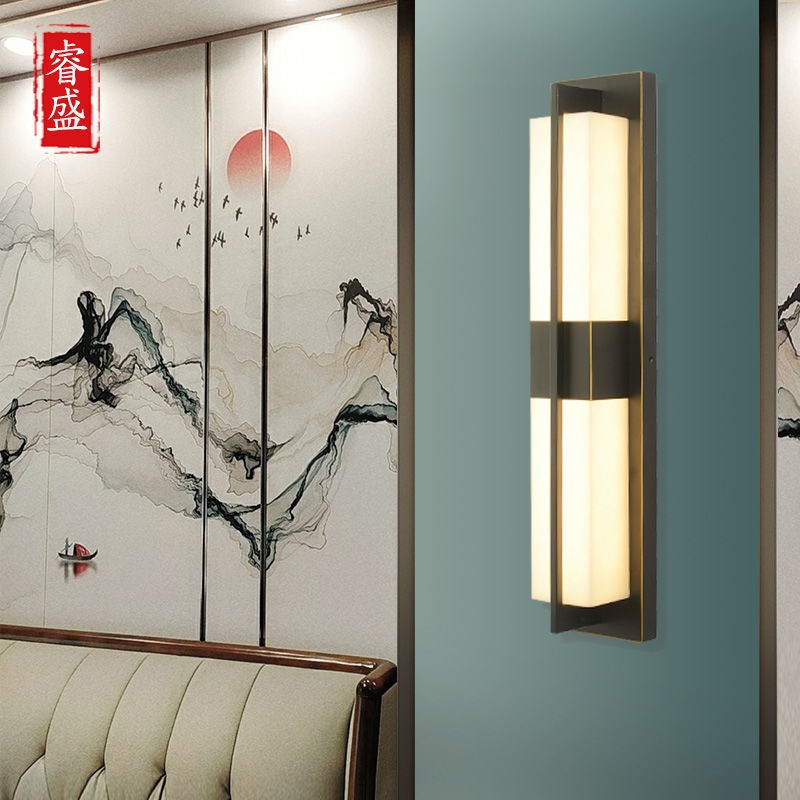T5e新中式壁灯中国风长方形客厅背景墙电视墙灯简约卧室床头过道