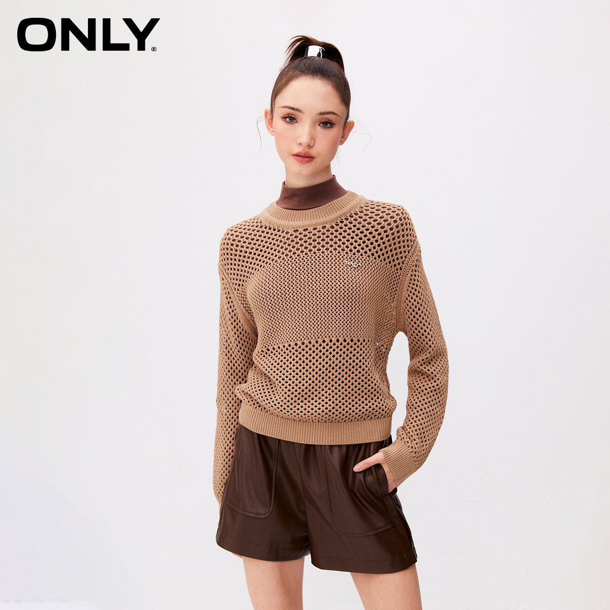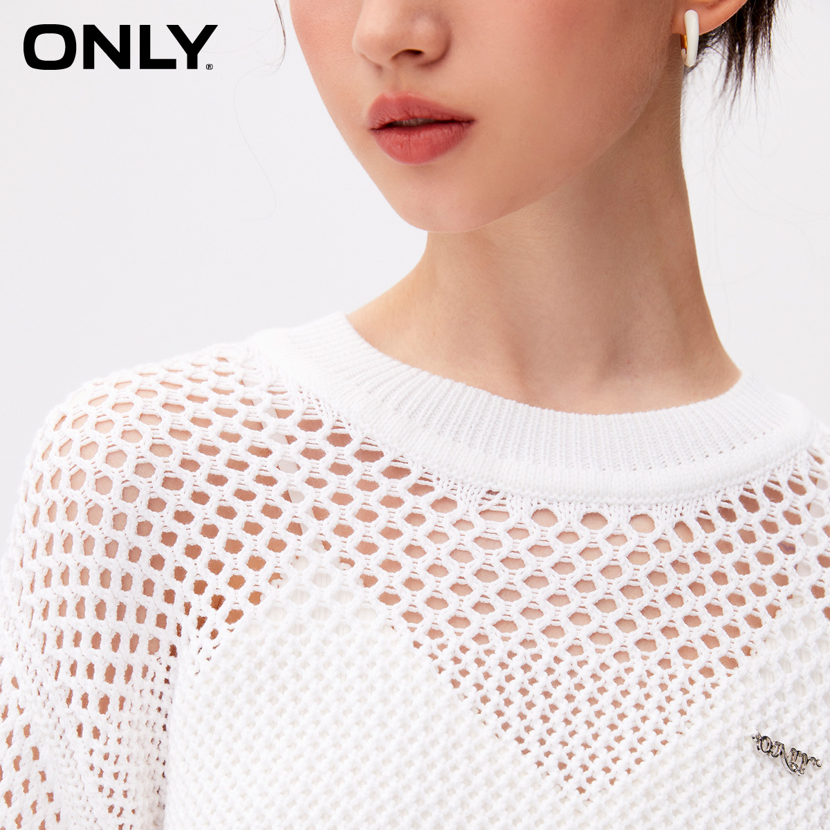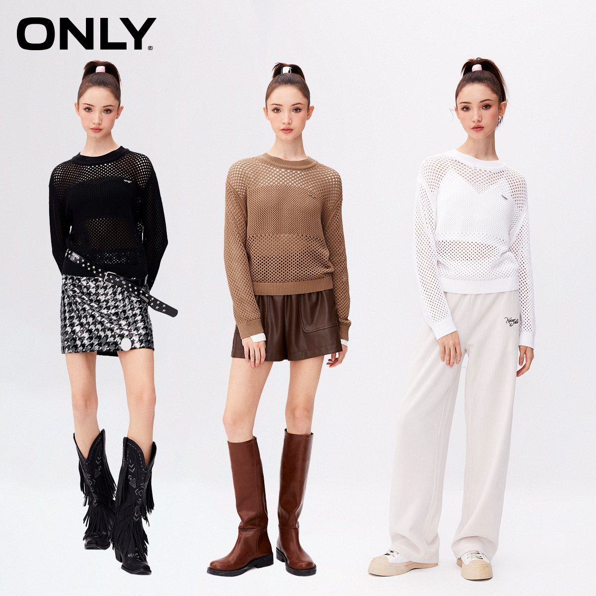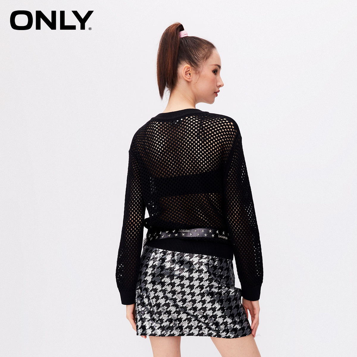 【ONLY奥莱】秋季时尚百搭镂空圆领长袖宽松针织衫女
