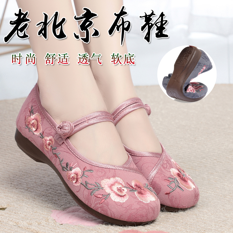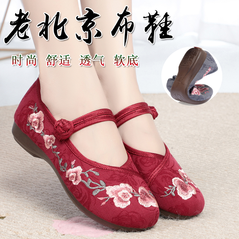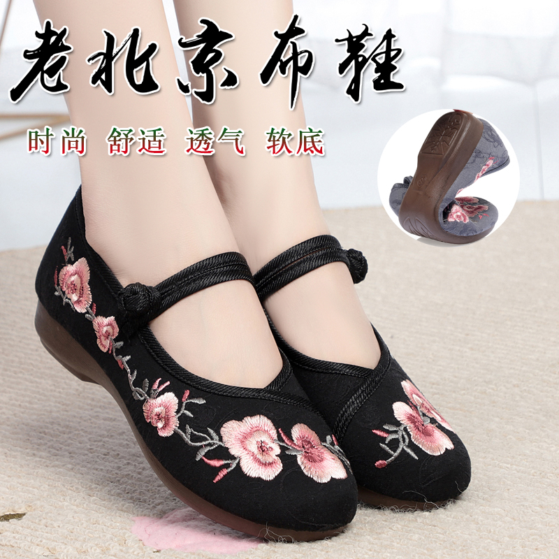 新款时尚民族风绣花鞋春夏透气软底防滑中老年妈妈老北京布鞋女鞋