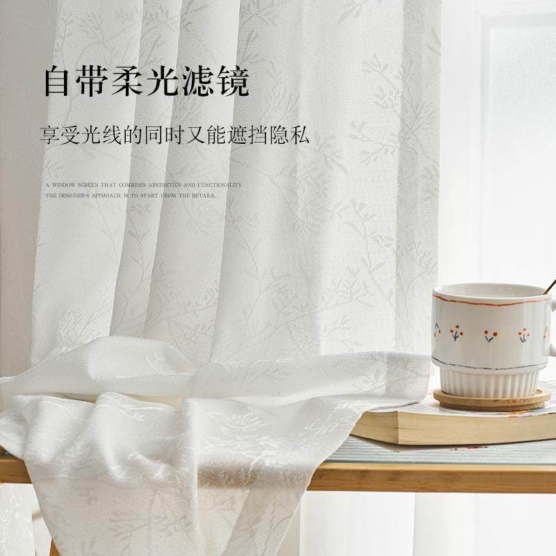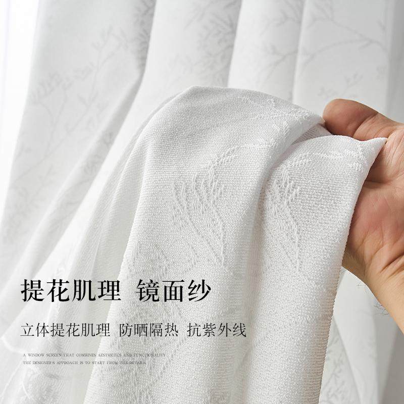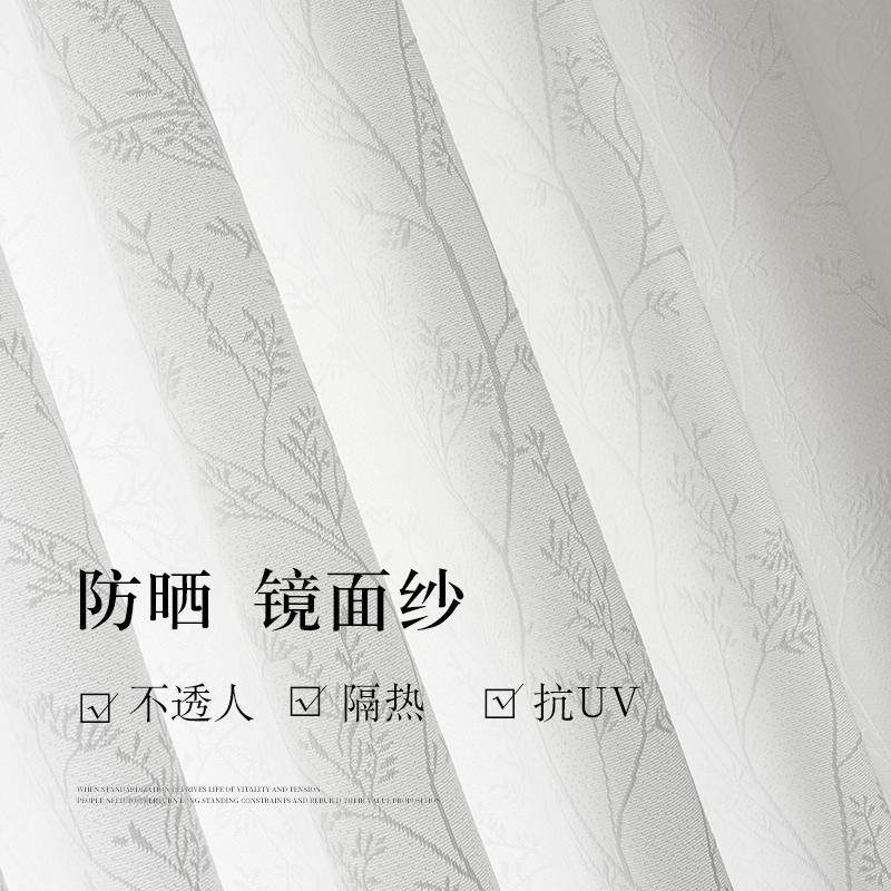 镜面纱帘隔热防晒遮阳透光不透人客厅飘窗阳台窗帘窗纱奶油色藤条