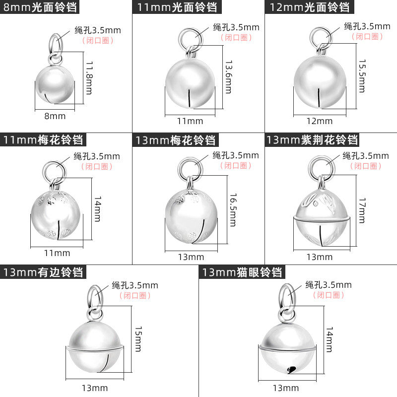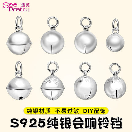 S925银铃铛纯银会响脚链宝宝手链编织饰品吊坠配件diy银饰小挂件