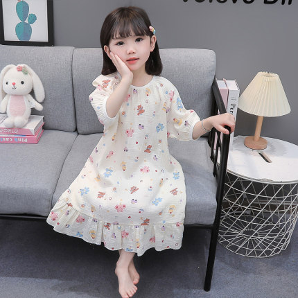 2025新款女童睡裙纯棉纱布女宝宝半袖儿童睡衣女孩春秋公主家居裙