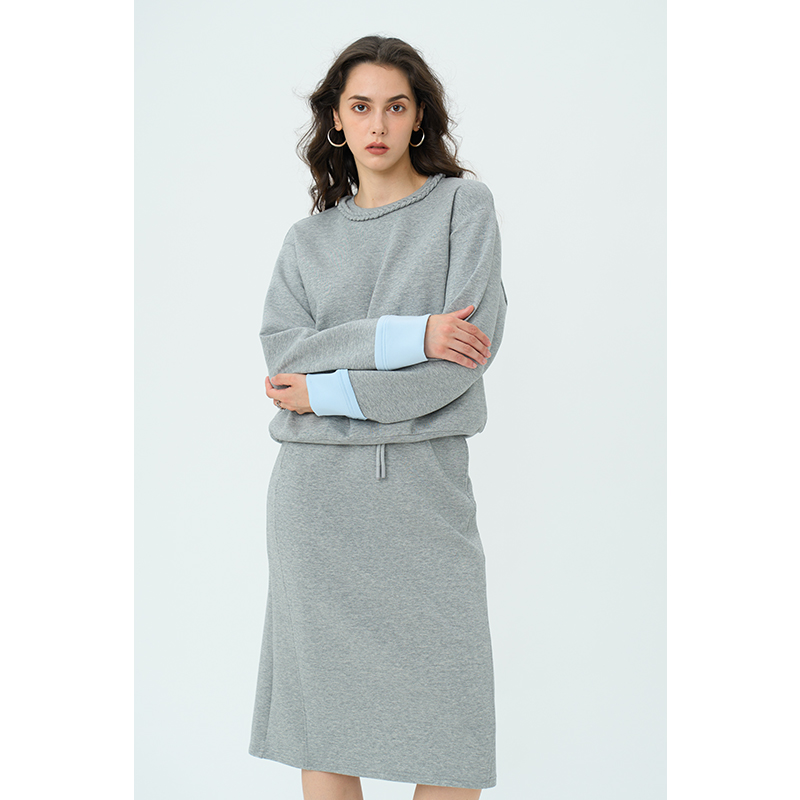 HeyDress休闲卫衣套装女春秋设计感麻花领显瘦松紧腰半身裙两件套