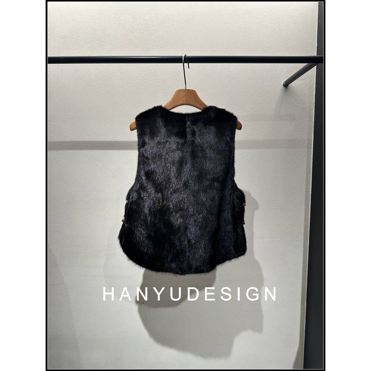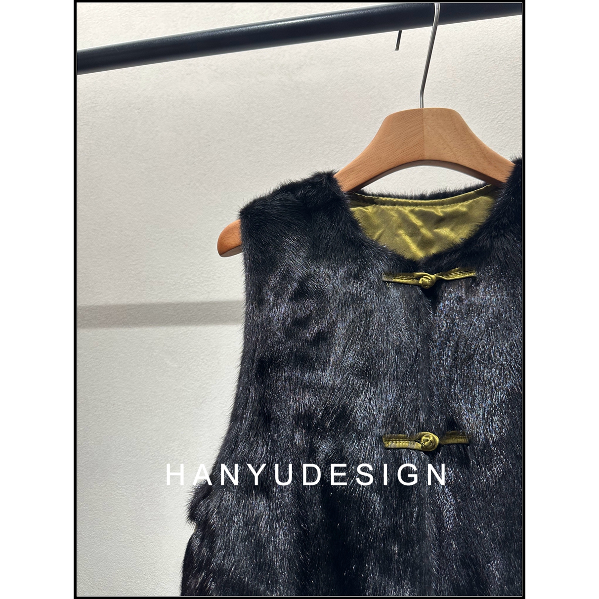 【韩钰DESIGN】 重工国风盘扣水貂马甲皮草外套女