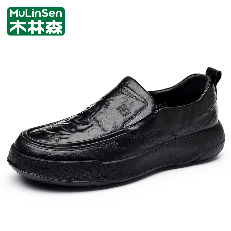 木林森皮鞋男款春季商务休闲头层牛皮一脚蹬板鞋爸爸软底乐福潮鞋