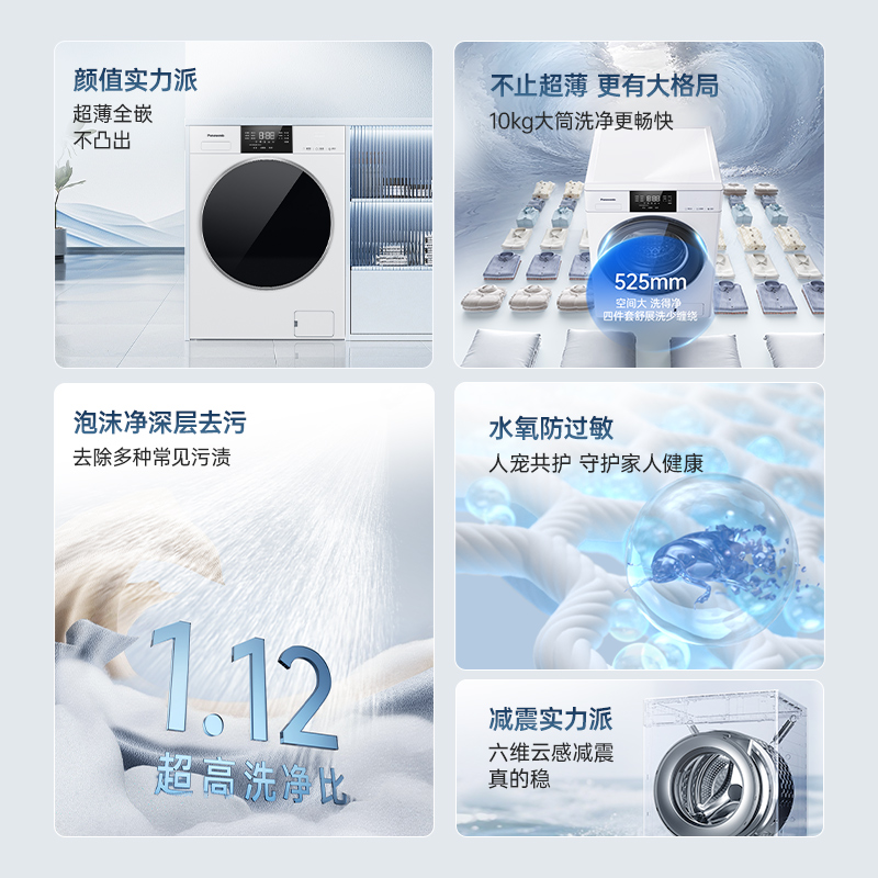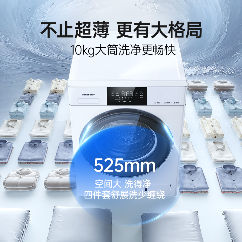 [白月光5.0 SE]松下10kg滚筒全自动洗衣机家用除菌水氧防过敏F2A1