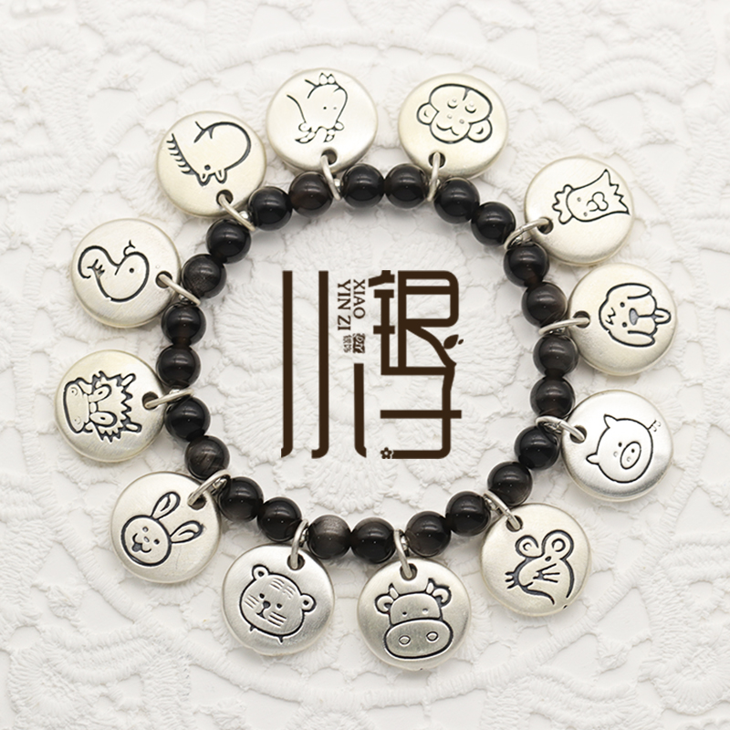 S999纯银十二生肖卡通圆牌吊坠