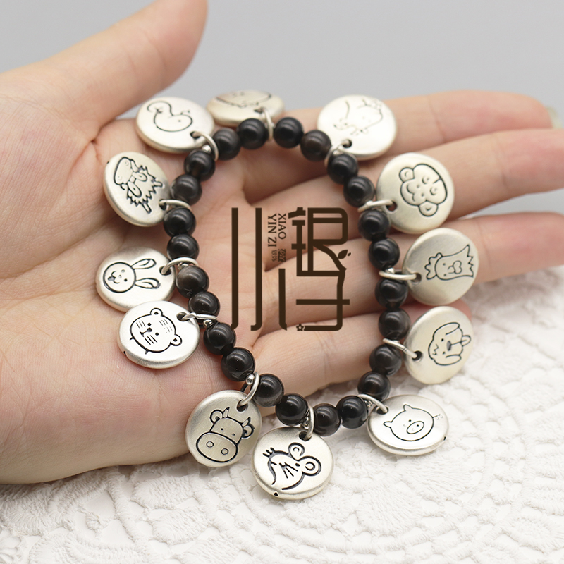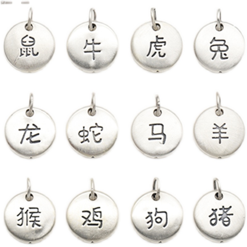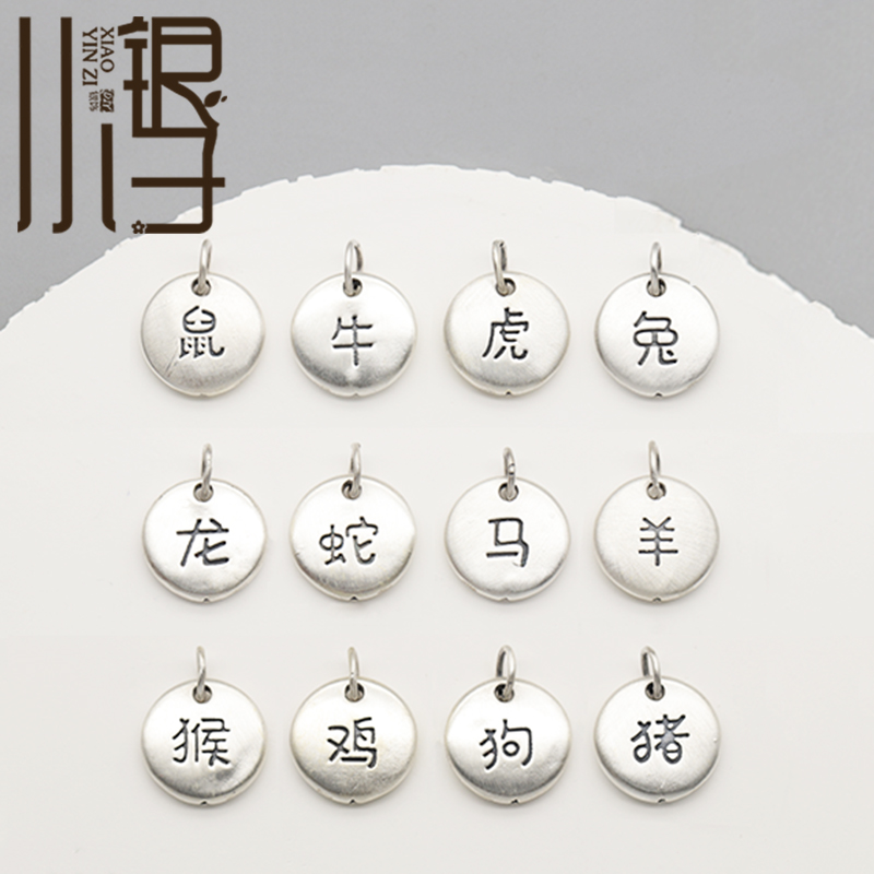 足银空心吊坠 十二生肖卡通圆牌吊牌S999纯银DIY编绳串珠配件材料