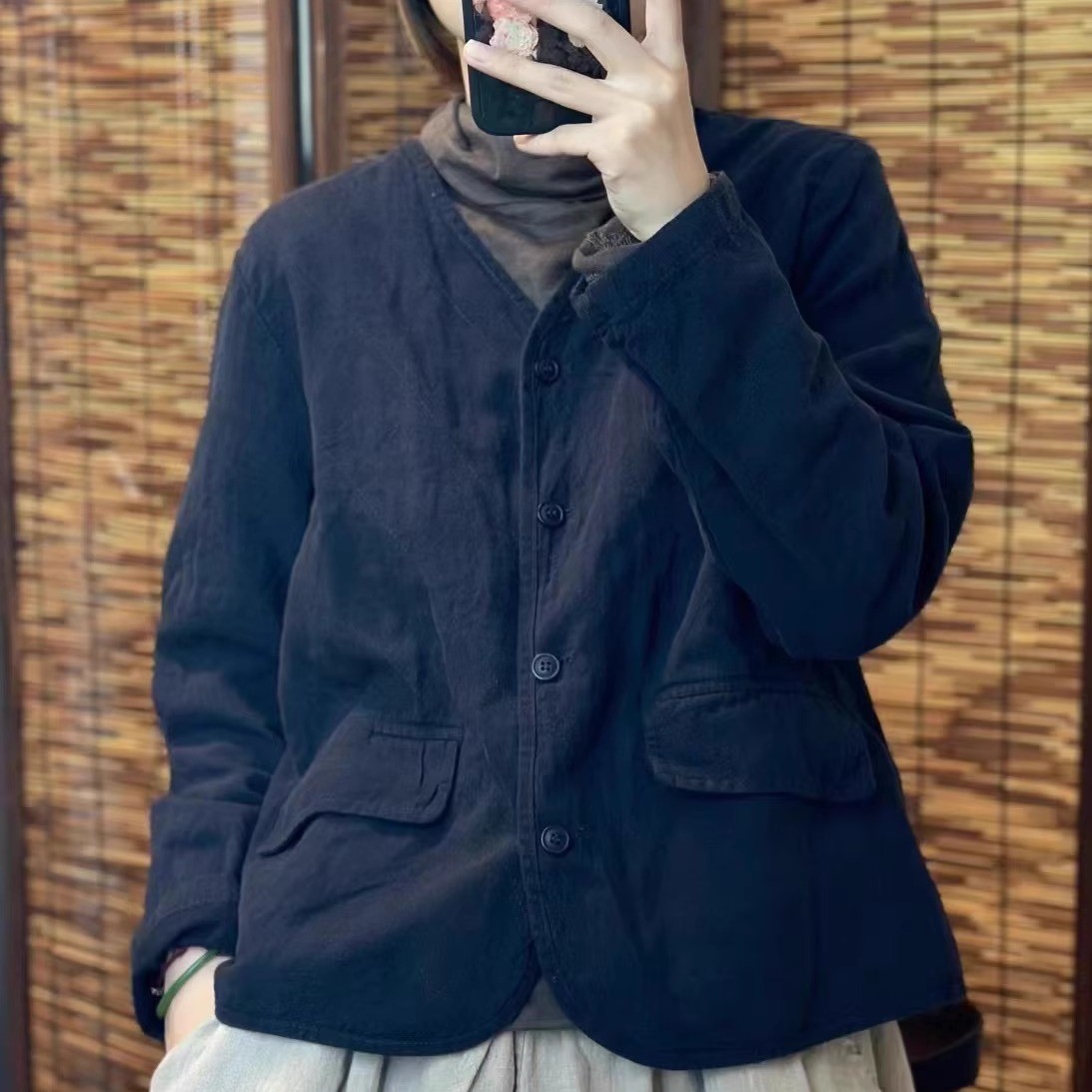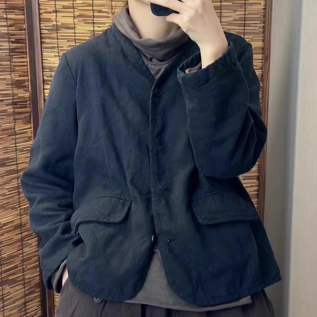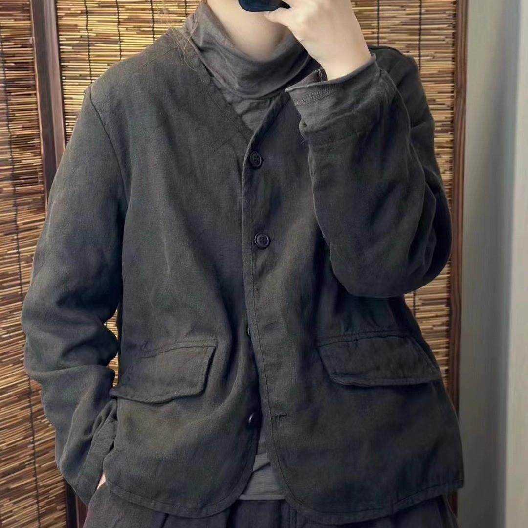复古文艺带衬亚麻小西装外套女2025春秋新款宽松气质显瘦时尚开衫