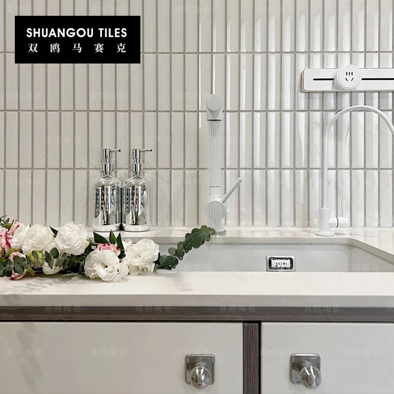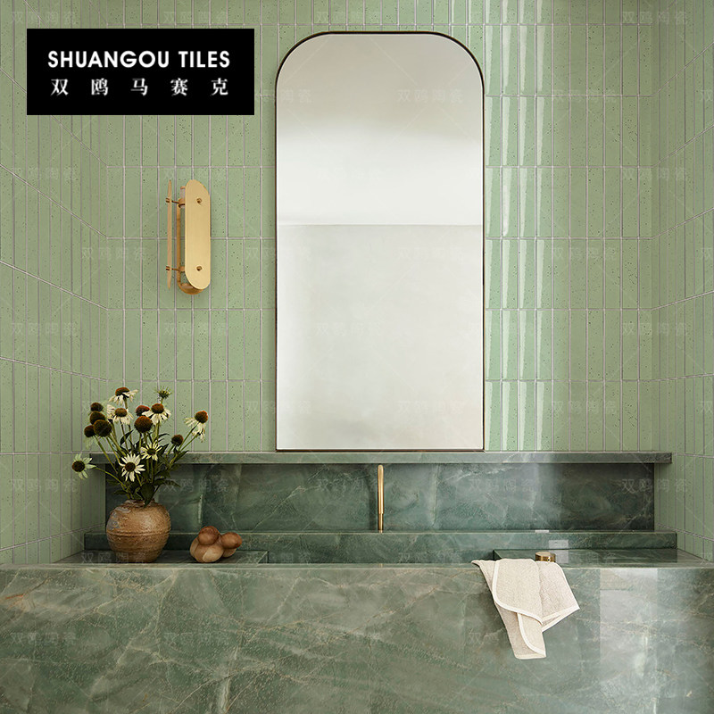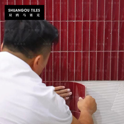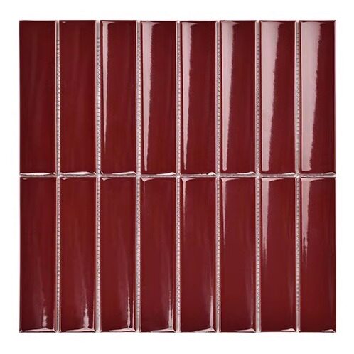 双鸥酒红色月牙砖弧形竹节长条陶瓷马赛克瓷砖卫生间厨房背景墙砖