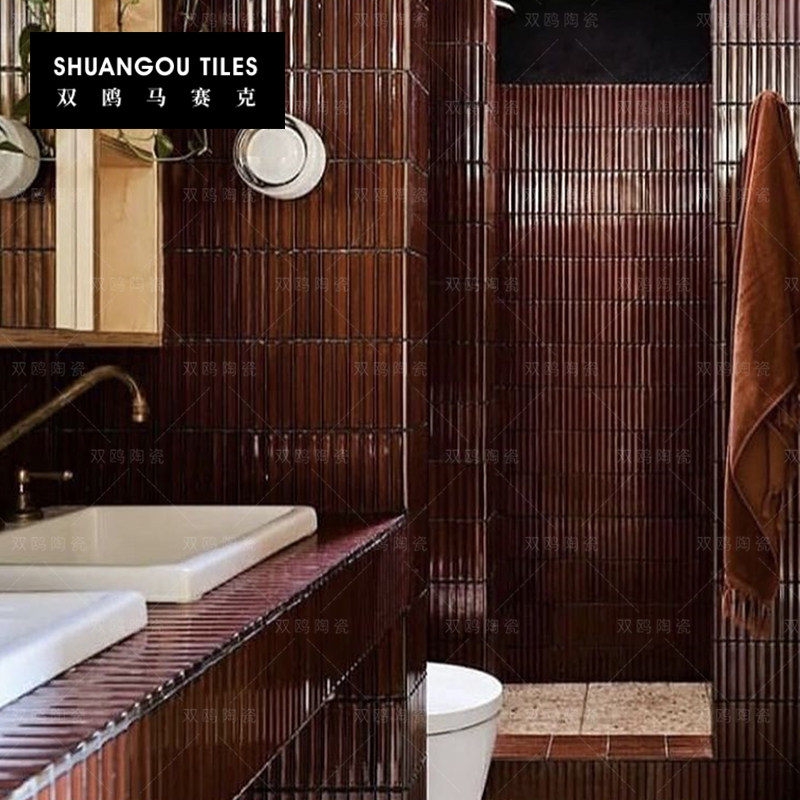 双鸥酒红色月牙弧面马赛克卫生间
