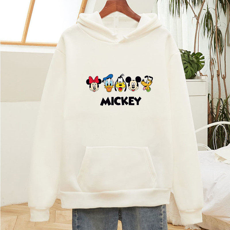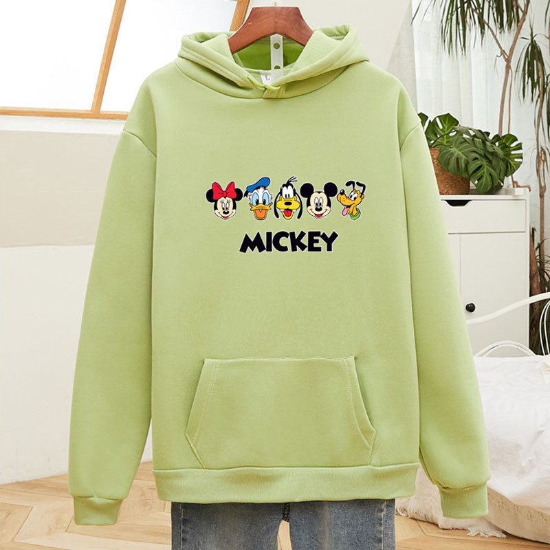 米奇连帽卫衣女2022秋冬新款韩版加绒加厚大码百搭套头上衣潮