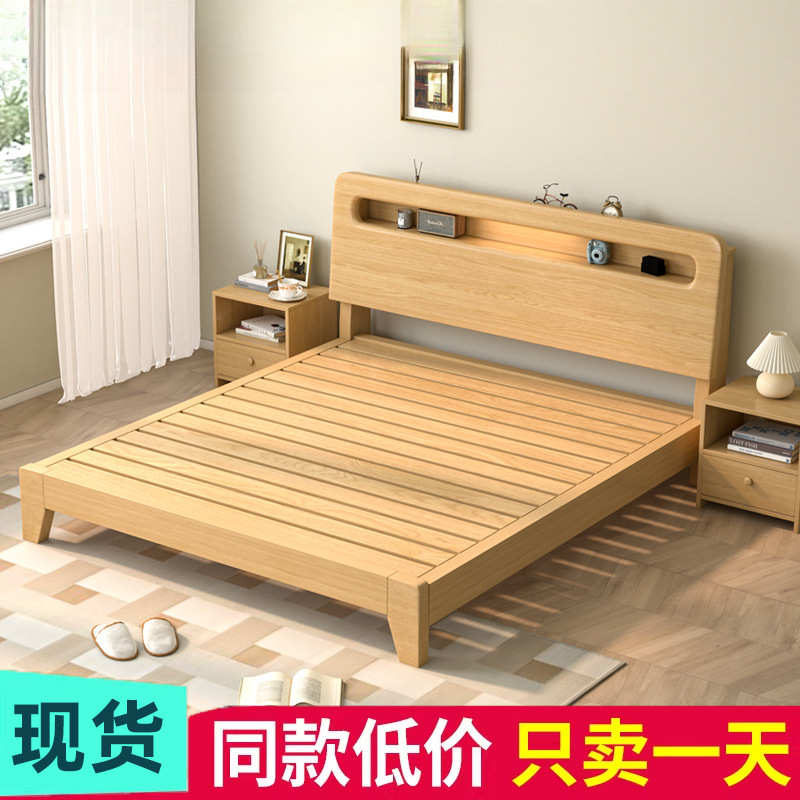网红实木床现代简约双人床1米8主卧经济型1.5床出租房用1.2m单人