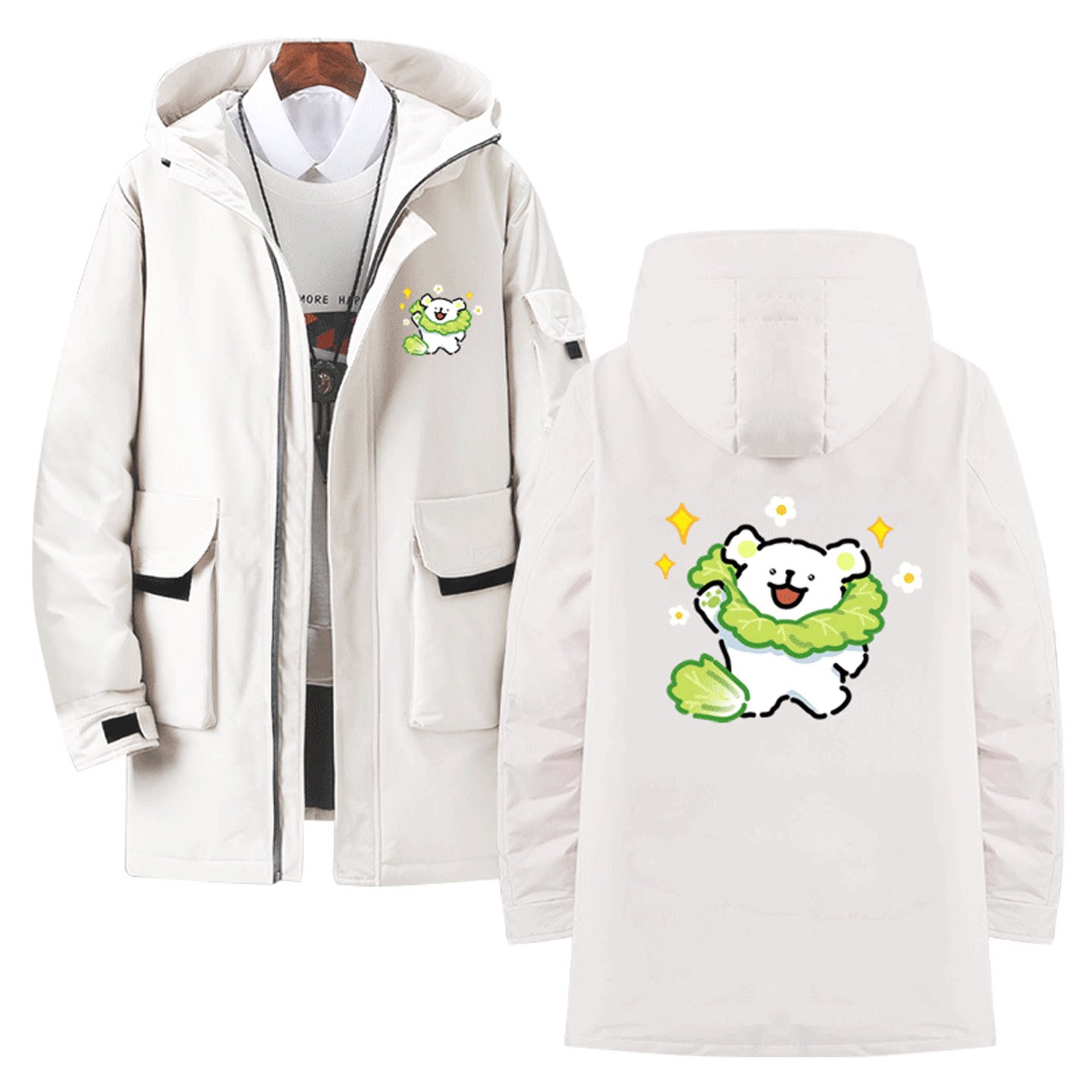 线条小狗联名菜狗周边卡通可爱印花男女秋冬季可定制中长款羽绒服