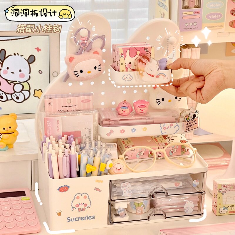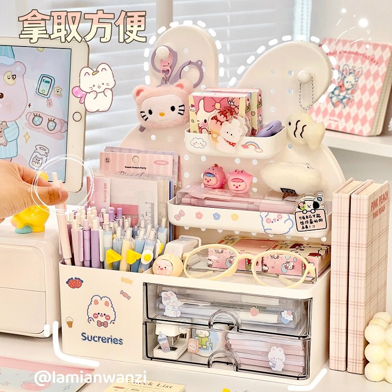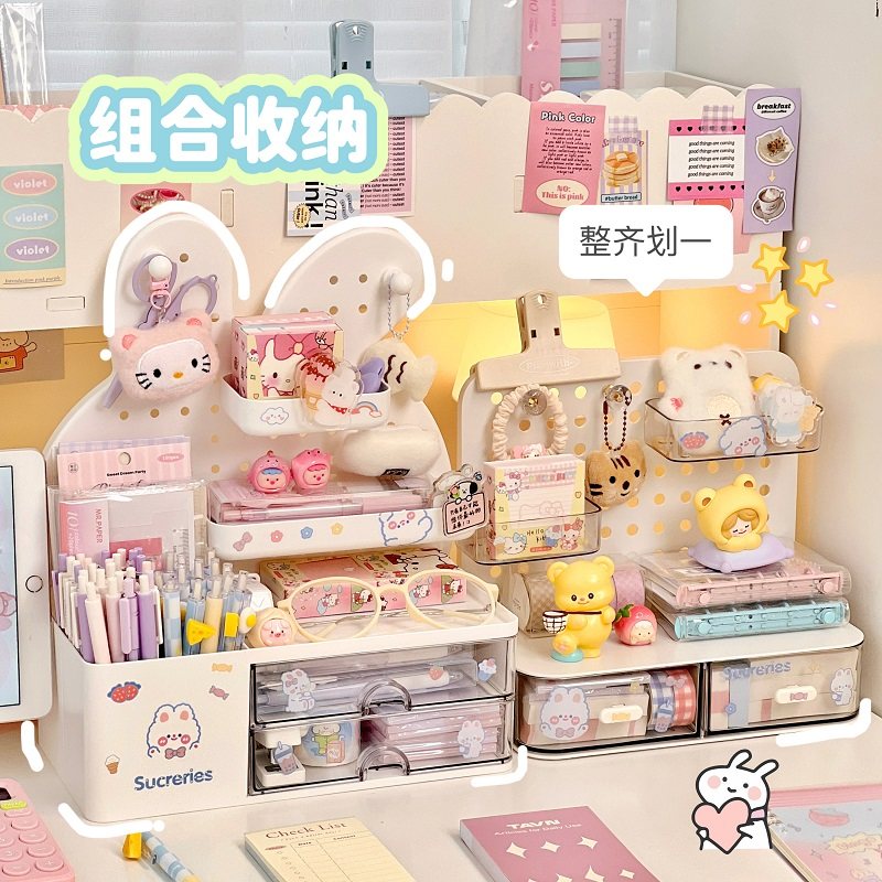 桌面洞洞板收纳盒书桌学生可爱笔筒置物架化妆品梳妆台整理神器女