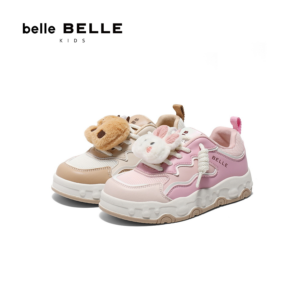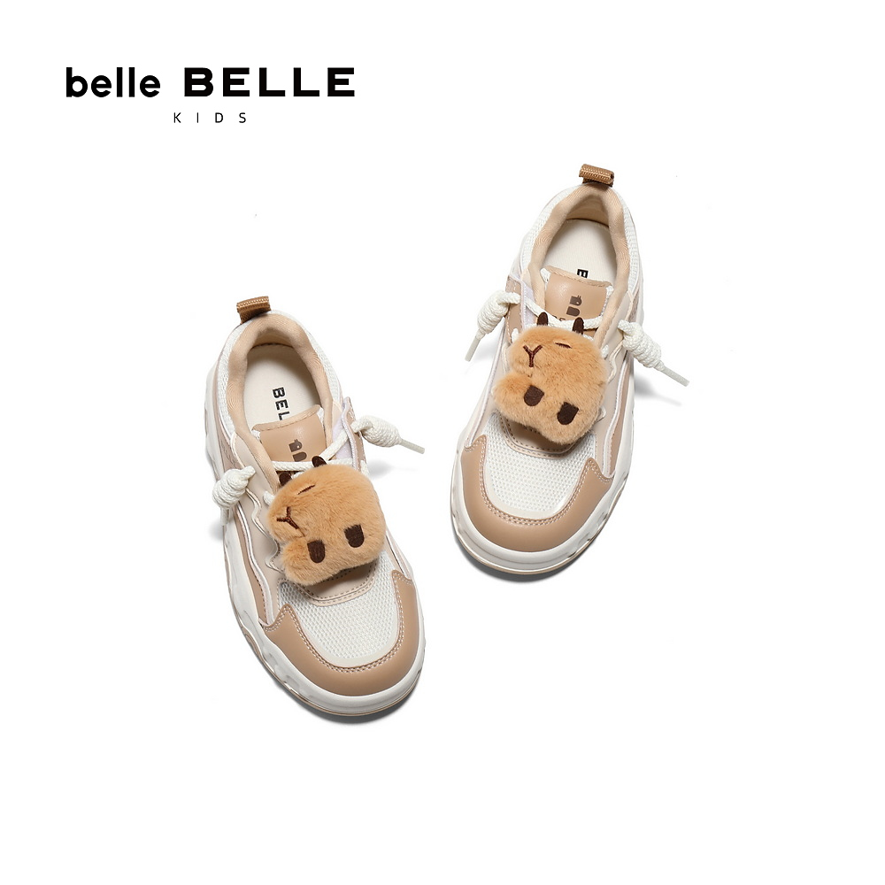 百丽童鞋卡皮熊厚底板鞋免系带女款大童新款网面透休闲鞋91085B85
