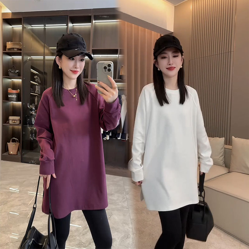 欧韩时尚洋气女款刺绣中长款大衫2025秋季新款纯色圆领长袖T恤潮