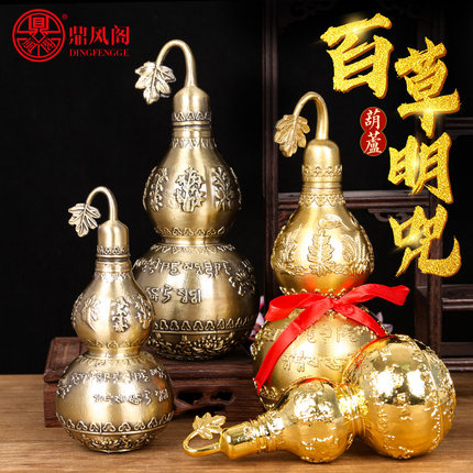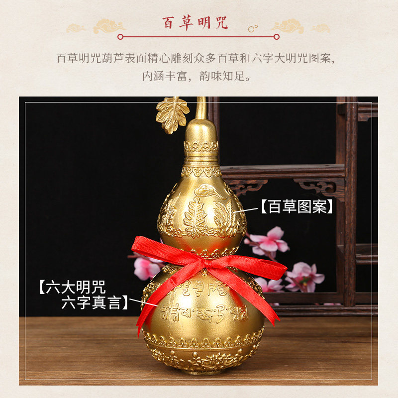 鼎风阁铜制百草明咒葫芦摆件六字大明咒开口空心合金葫芦客厅装饰