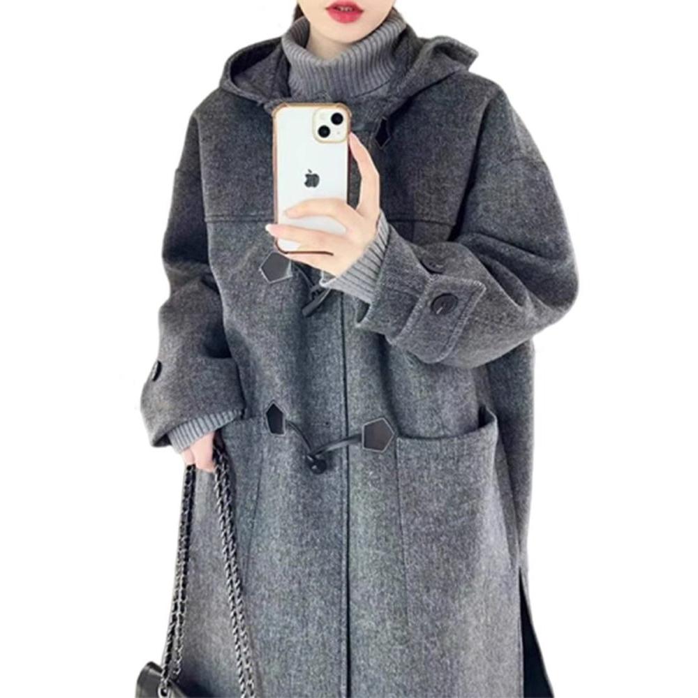 大码300斤秋冬季牛角扣呢子灰色大衣高级感赫本风胖mm毛呢外套女